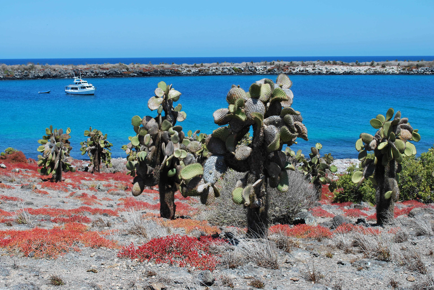 Charles Darwin Galápagoson töltött idejének nagy részében a James-öbölben tartózkodott, míg a Beagle tovább folytatta a szigetcsoport felderítését. Az Espumilla Beach fahéjszínű homokja kedvelt tojásrakó hely a teknősök körében. A James-öböl igazi drágakő: Puerto Egas csipkézett partvonala, a medvefókák barlangjai és a Bucaneer’s Cove kristálytiszta vize olyan, akár egy film egzotikus díszlete.