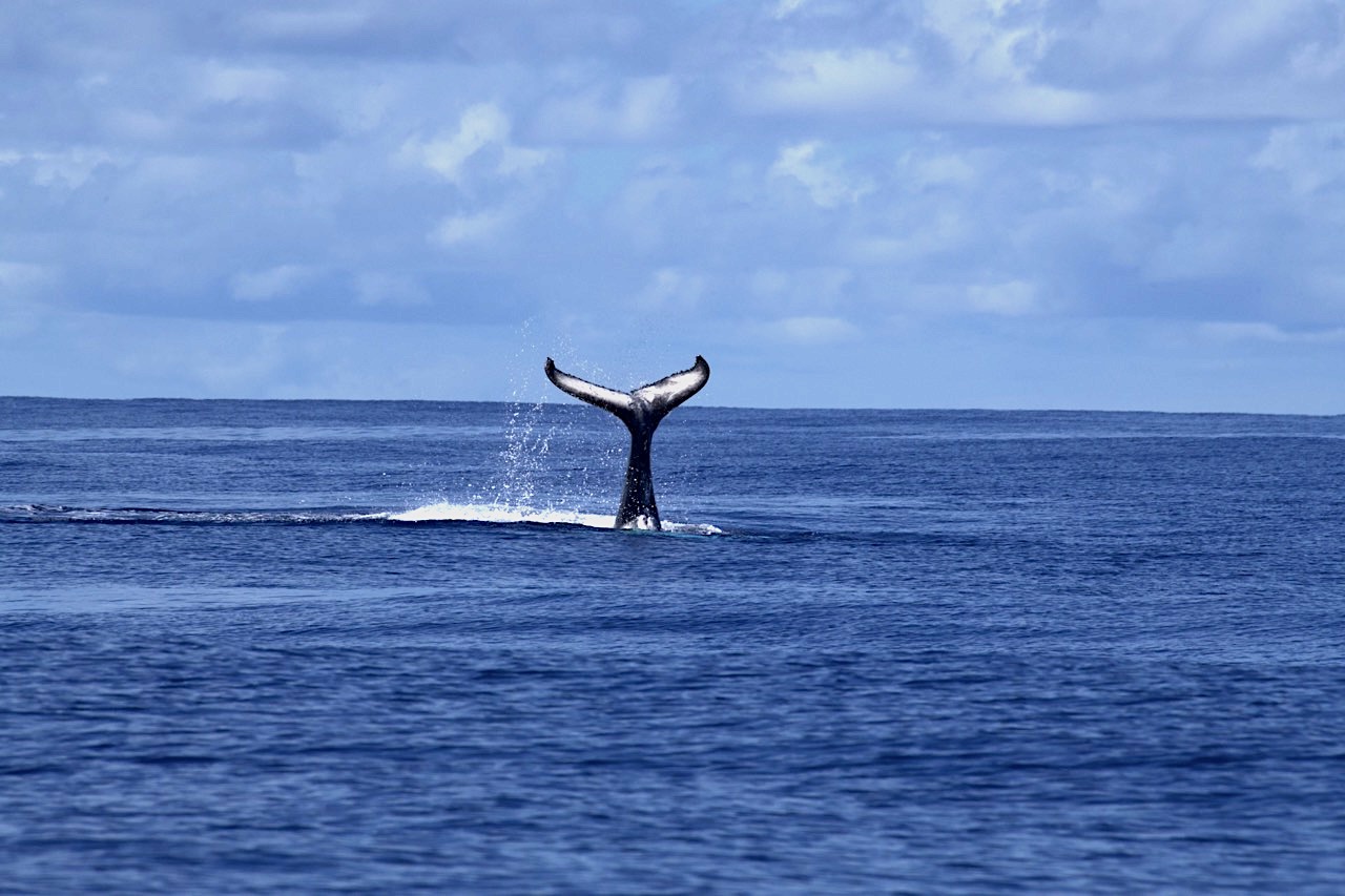 De van itt egy sokkal nagyobb látványosság, méghozzá a szaporodási időben errefelé hemzsegő hosszúszárnyú bálnák (Megaptera novaeangliae), pontosabban az a lehetőség, hogy a hatalmas emlősöket a víz alatt, természetes környezetükben figyelhetjük meg. Természetesen a bálnák megközelítésének megvannak a maga szigorú szabályai. A közelükbe érve, körülbelül száz méteres távolságból indulva úszunk a közelükbe, majd tőlük biztos távolságra, szigorúan a vízfelszínen maradva nézhetjük őket. Az utódneveléssel elfoglalt bálnák a vízfelszín alatt 10-20 méterrel lebegnek, de pár hónapos borjúk csintalan gyerekként le-fel úszkál és gyakran az őket szemlélő emberekhez is odaúszik. Hatalmas élmény ez, de a 6-7 méteres és közel egy tonnás állat egy nem jól úszó embert könnyen elsodorhat, így a szabály szerint ekkor hátrálni kéne. Könnyű ezt mondani, hiszen a bálna gyorsabban úszik, mint mi. Az esetleges cápatámadások elkerülése érdekében szigorú szabály, hogy folyamatosan kémleljük a vizet és ha cápát észlelünk, azt a vezetőnknek jelezve egy helyre úszunk és a hajót bevárva visszamegyünk annak fedélzetére. Csapattársaimmal ellentétben titkon remélem, hogy legalább egy méretes tigriscápával (Galeocerdo cuvier) találkozunk, ezért lelkesen kémlelem a mélységet. A mélységből visszaverődő napsütés vibráló fényei közül hirtelen előbukkanó cápa látványa egy pillanatra megdobogtatta a szívemet, de csak egy érdeklődő feketeúszójú szirtcápa úszott a közelünkbe, aki amilyen gyorsan érkezett úgy el is tűnt a nagy kékségben. De vajon mi vonzza ide a hosszúszárnyú bálnákat, hogy itt hozzák világra borjaikat? A déli féltekén élő bálnák táplálkozóhelyeiket elhagyva, hosszú, mintegy 6000 kilométeres útra indulnak, hogy 2-4 hónap múlva, júliusban ideérjenek. Az itt töltött hónapok alatt párzanak, illetve a vemhesen érkezett tehenek itt hozzák világra borjaikat és kezdik meg nevelésüket. A szigetvilág védett zátonyai, öblei és meleg tengervize biztonságos menedéket nyújtanak a hidegebb vizeken bálnaborjakra is vadászó kardszárnyú delfinek (Orcinus orca) csapatai elől. Amikor az anyatejen nevelkedő borjak már kellőképpen megerősödtek, akkor legkésőbb novemberig útra kelnek, hogy anyjukkal együtt térjenek vissza az Antarktisz hideg vizeire. Az Egyenlítőtől északra élő fajtársaik ugyanezt teszik, csak ők az Északi sark felé indulnak.