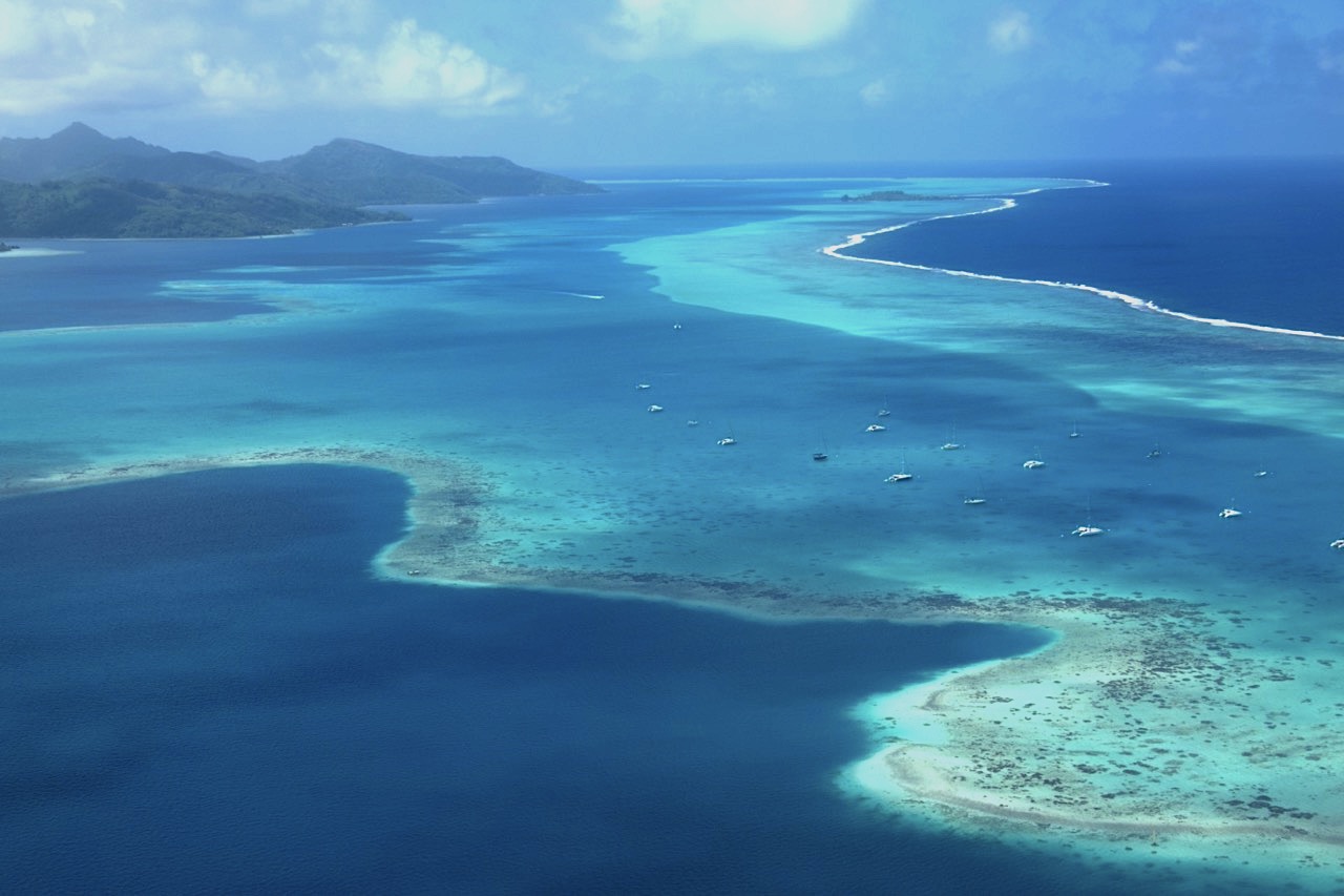 A fő szenzáció azonban a víz alatt vár minket. Itt nem a patakokba telepített angolnákra és tilápiákra gondolok, hanem a Csendes-óceán korallszirtjeire, ahol a svéd FishBase adatbázisa szerint közel ezer halfaj él. A Raiatea és Tahaa szigeteket egyetlen - évmilliók alatt kialakult - korallzátony veszi körül, így feltételezhető, hogy valamikor egy közös szigetet alkottak. A szigetek körül korallzátonyok nyitott szakaszai – ahol a víz a nyílt tenger felől akadálytalanul áramlik – olyan táplálékban gazdag korallkerteket hoztak létre, amelyek több mint 150 korallfajnak adnak otthont. Itt él a gyöngyosztriga (Pinctada margaritifera) is, aminek a szigetcsoport a legismertebb exporttermékét az igazgyöngyöt köszönheti. Habár itt nincsenek végtelen fehér homokos strandok, a ritka növény- és állatfajok miatt Raiatea máig felfedezetlen kincseket rejt a tudósok és a természetbarátok számára. Kis csapatunk Tahaa sziget korallkertjének felfedezésére indul, ami nem is olyan egyszerű. A szigetet körülvevő atoll peremvidékére jellemző erős sodrást kijátszva, a kókuszpálmák alatt vezető ösvény felső végén merészkedünk a vízbe, majd a vízfelszínen sznorkelezve, a sekély vízben megbúvó tucatnyi korall és halfaj színes kavalkádja felett lebegünk vissza motorcsónakunkhoz. A sziget látképe és az egyedülálló víz alatti élővilág paradicsomi állapotot teremtve jelzi, hogy a világ egyik legszebb korallzátonya felett úszkálunk.