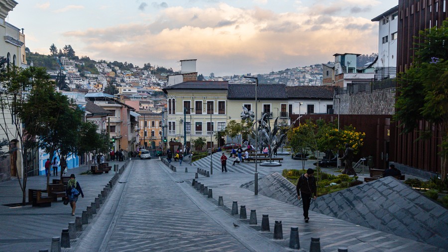 A város 2800 méter magasan fekszik, és már érezhetőbb volt a ritkább levegő hatása. Itt már a déli féltekén jártunk. Igaz, csak 35 kilométerrel voltunk az Egyenlítőtől, de délre. A szállás egy gyönyörű, spanyol stílusú udvarházból kialakított szállodában volt. Udvarán pálmák és mindenféle színes virágú fák nőttek, amelyek között kolibrik repkedtek.