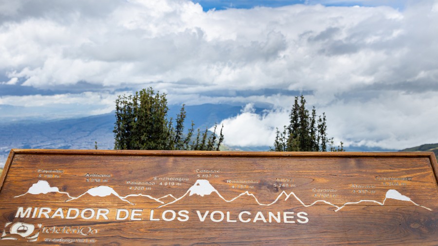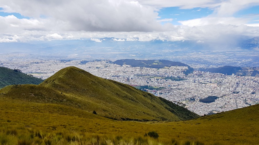 A múzeumlátogatás után felvonóval felmentünk egy Quito melletti 4.100 méter magas kilátópontra, ahonnan jó idő esetén végig lehet látni a vulkánok útját, amelyen jelenleg is működő hegyóriások vannak, köztük a Kotopaxi. 5.000 méteren sűrű felhőréteg húzódott, így ezeknek a vulkánoknak csak a lábát láthattuk. Különleges látványként maradt az alattunk elterülő hatalmas város, amely vagy hatvan kilométeren húzódik a meredekfalú, kisebb hegyekkel szabdalt völgyben. Felfoghatatlan mennyiségű épület töltötte be látóhatárt, ahol legalább hétmillió ember élt.