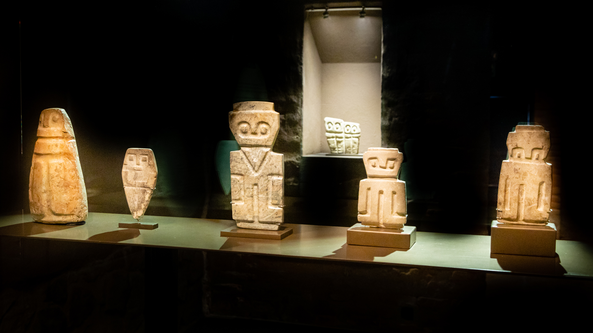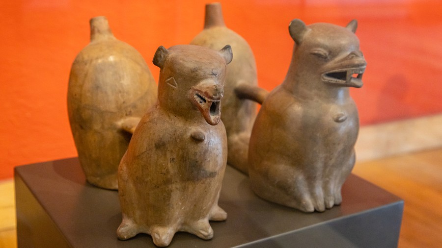 A következő helységben állatok ábrázolásait láthattuk, az azután következőben pedig olyan állatszobrok voltak, amiket meg lehetett szólaltatni. Vagy úgy, hogy sípként megfújták, vagy úgy, hogy vizet töltöttek bele, és a figura mozgatásakor az áramló víz által tolt levegő fújta meg a sípként működő lyukakat. Az utolsó teremben olyan szobrokat állítottak ki, amelyeknek valószínűleg csak díszítő szerepe volt. Ezek nagyobbak voltak, kidolgozásuk pedig mesteri. Hogy mit ábrázolnak az a múlt homályába veszett. Mivel ezeknek a népeknek hangokat leképező, betűs írásformája nem volt, a fontos dolgok megörökítésére képi ábrázolásmódot használtak, mint például a hunok a tarsolylemezen. Ezek az alkotások is hasonló célt szolgálhattak.