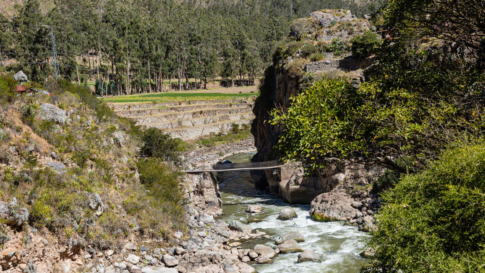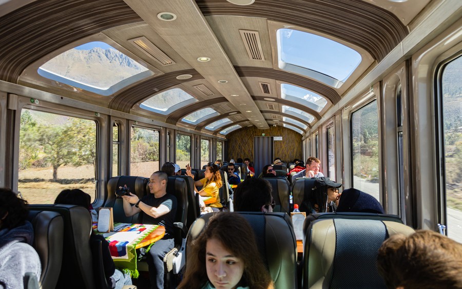 Az út elején épített teraszokat és kisebb városmaradványokat láthattunk a folyó közelében, sőt olyan, a mai napig működő vízcsatornát, ami a Szent Könny hegy jégmezőétől szállítja az ivóvizet 15 kilométeren keresztül. Később a völgy túl szűkké vált a mezőgazdasági tevékenységhez. Ahogy közeledtünk a végállomáshoz, a köderdők lehózódtak egészen a folyóig. Vöröslöttek a Pisonay fák (életfák) virágzó koronái, és okker színben pompáztak a sziklafalakat beborító óriás broméliák. A lassan haladó szerelvényen, amelyet ugyanaz a társaság üzemeltet, mint az Orient Expresst, szendvicset és italokat szolgáltak föl, mint egy repülőn.