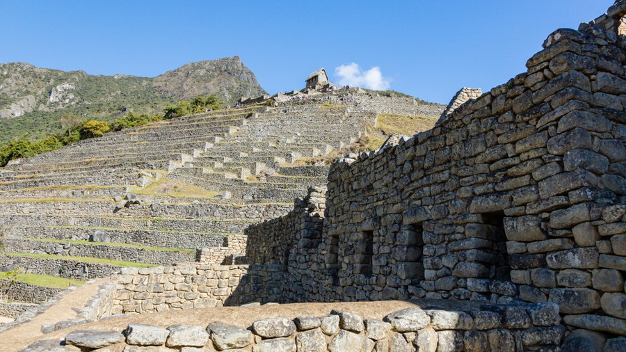 A lakónegyed Szent kerület felé eső részén áll a Főpap háza, amelynek falába egy rendkívüli gondossággal faragott kőtömböt illesztettek: ez az ún. „32 sarkú kő”; valószínűleg itt laktak a Nap papnői, a napszüzek. Mellette áll egy rituális célokat szolgáló fürdőház és még egy épület, amelyről azt feltételezik, hogy talán börtön lehetett. A lakónegyedben négyszögletes alaprajzú kőházak álltak; a kőtömbök közti réseket finom törmelékkel töltötték ki. A házakat magas, fából készült vázszerkezetű, szalmával fedett nyeregtető borította. A kecsua népek még ma is ezt a technikát használják. A 100 házból álló, 1000 ember által lakott települést mindenfelé meredek, gyakran a sziklába vágott lépcsők hálózták be; a lépcsőfokok száma elérte a 3200-at. A víz a sziklába vájt, több kilométeres csatornákon jutott el a városba.