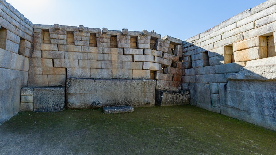 Az inka vallási világ alapeszméje a Napisten, Inti tisztelete. Hitük szerint a Nap volt népük atyja és királyuk őse, a Hold férje és bátyja, a bolygók és a csillagok pedig a Nap kíséretét alkották . Így az inkák számára nagy jelentőséggel bírtak a csillagászati megfigyelések. Hitvilágukban Viracocha isten teremtette a világot és az embereket; ez utóbbiakat kőből faragta ki. Ezért az inkák sok követ szentként tiszteltek, és a kövek gondos megmunkálása részben ebből a hiedelemből fakadt. A felső városrészbe a városkapun lehetett belépni, innen pedig síkban haladó, kövezett út vezetett a terményraktárakhoz, és két templomhoz. A fehér andezitből épült nagyon finom kidolgozású „Háromablakos templom” elnevezésű épület keleti oldalán három trapéz alakú nyílás van, ahonnan csodálatos kilátás nyílik a szemközti hegyláncra. Az épület funkcióját nem ismerjük, talán a király ideiglenes rezidenciája lehetett. A négyszögletes alaprajzú „Főtemplom”-nak nincs meg a bejárati fala. Az épület hátsó falában egy 4 méter széles kőtömb fekszik. Mellette két kisebb szögletes kőtömb látható, fölöttük hét fülke sorakozik.