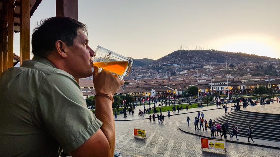 Miután újabb holmikkal gazdagodtunk a Cusco központjában levő szállásunkra utaztunk. Estére annyi dolgunk maradt, hogy kiültünk a főtér egyeik emeleti teraszára, és a lemenő Nap halványuló sugarainál a színes forgatagot nézve elfogyasztottunk egy korsó helyi sört.