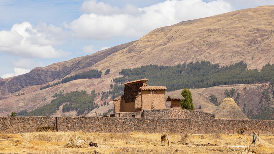 Cuscoból a Wirakocha-ösvény mentén indultunk a Titikaka-tó felé. Ezt az utat minden Inkának végig kellett járnia a főváros, Cusco főterén történt beavatást megelőzően. Folyóvölgyekben, gyérnövényzetű hegyek között vezetett az utunk. A hegyoldalakon minden felé régi teraszok maradványait lehetett látni. A növényzet a völgy alján gabonafélékből állt, amelyeket most arattak, a hegyoldalakat pedig gyér, fűszerű, sárgászöld növényzet alkotta, amelyek között foltokban kibukkant a vöröses talaj. Néhány papírfától és eukaliptusztól eltekintve fás növényt nem lehetett látni, ami nem csoda, hiszen 3.600 méterrel a tenger szintje fölött jártunk. Kétórás utazást követően először Viracocha templomába látogattunk el Raqchi faluban. De hogyan is kerül Viracocha, az ajmarák főistene a képbe? A hetedik Inkának, Javarvakaknak fia született, akit Cusinak neveztek el. Ahogy a fiú cseperedett, hosszú szakálla kezdett növekedni, ami a hegyi népeknél nem jellemző. Az anyát azonnal megvádolták, hogy férjét megcsalta, és szigorú büntetés várt rá. A szokások szerint hajánál fogva szakadék fölé akarták lógatni, de férje kikérte a papok véleményét, akik egy feláldozott láma belső szerveiből megállapították, hogy a nő ártatlan, az istenek avatkoztak be a fiú fogantatásakor. Ahogy Cusi cseperedet, fenerossz gyerek lett belőle. Verekedett, tört, zúzott, aminek az lett a vége, hogy a hegyek közé száműzték pásztornak. Telt-múlt az idő, és egyszer csak Cusi bejelentés nélkül megjelent apja színe előtt. Elmondta, hogy álmában hosszú, fehér szakállú isten jelent meg előtte, aki azt mondta, hogy ellenség támadja meg hamarosan Cuscot. Apja kinevette, és elzavarta. Néhány hónapon belül azonban a harcias Chankák harmincezres sereggel támadtak az inkákra. Javarvakak tehetetlenségében elmenekült magára sorsára hagyva népét. Ekkor Cusi a sereg élére állt, és legyőzte a támadókat a Raqchi melletti völgyben. A győzelem után apját megfosztották címétől és Cusi lett az új Inka. Trónra lépése után vette fel a Titikaka-tó mellett élő Ajmarák fehérszakállú istenének, Viracochának a nevét, és tette őt az inka nép főistenévé a régi főisten, Inti elé. Országát kiterjesztette a mai Chile és Argentína egy részének területére.