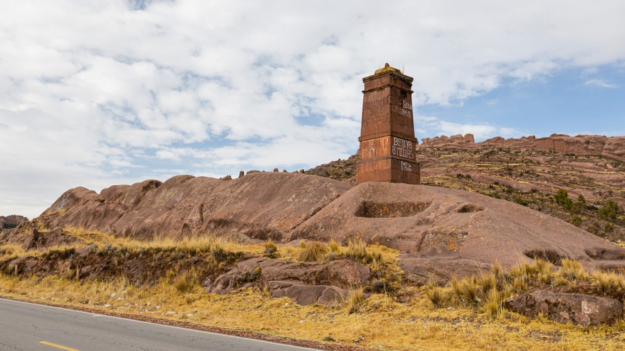 Ma reggelre hó borította a környező dombok tetejét. Alig fagypont fölötti hőmérséklet volt, az égen pedig sötét felhők kergették egymást. Dél felé indultunk a Tuticaca-tó partján, Bolívia irányába. Az ajmarák földjén jártunk. Ezt arról lehetett megismerni, hogy még a kecsuák temetőkbe temetik halottaikat, az ajmarák a házaik köré. A csempészek útvolán jártunk. A Bolívia-Peru-Chile hármas határon keresztül szállítanak mindent. Gázolajat, élelmiszert, ruházatot és természetesen kábítószert. Egész városok épültek fel ezen a vidéken erre az iparágra támaszkodva. Az út mellett állatformájú sziklákat láttunk. Ezt a területet hívják Amaru Punkunak. A helyi indiánok már régóta tiszteletben tartják a különféle sziklaalakzatokból álló területet, amelyek állatokra, épületekre, a dinoszauruszokra és mesterséges struktúrákra hasonlítanak. Az "Istenek Városá“-nak, vagy a „Szellemek völgyé“-nek is nevezik. Egy legalább ötven méter hosszú, kígyóformájú, vörös szikla mellett álltunk meg, amelybe a keleti iránytól 23 fokkal északra eltérő irányba meditálószéket faragtak. Ebben a téli napforduló napfelkeltéjén éppen szemből süti meg a Nap a benne ülőt. A szikla mögötti domb másik oldalán van a Dimenzió Kapu, ahová a legenda szerint a Lemuriából (másnéven Mu-ról, a Csendes-óceán déli részén fekvő, Atlantisszal megegyezően, csak korábban elsüllyedt kontinensről) érkező látogatók. A Bolíviai határhoz közeledve az út minősége egyre rosszabb lett, a szemét pedig egyre több. A tó kisebb része mellett jártunk, ami itt éri el a legnagyobb, 64 kilométer szélességét. A part mentén végig pisztrángtenyésztő telepek sorakoztak.