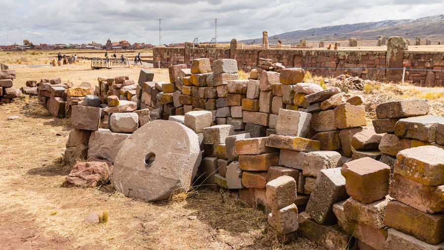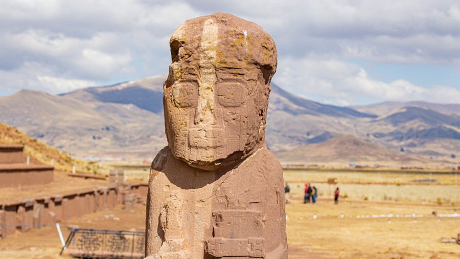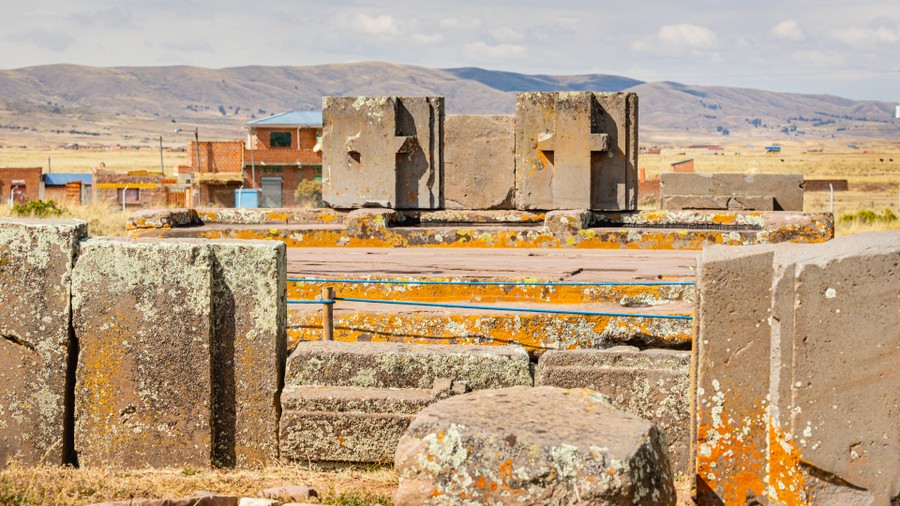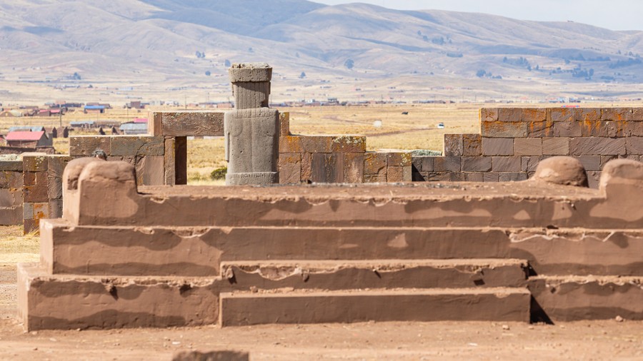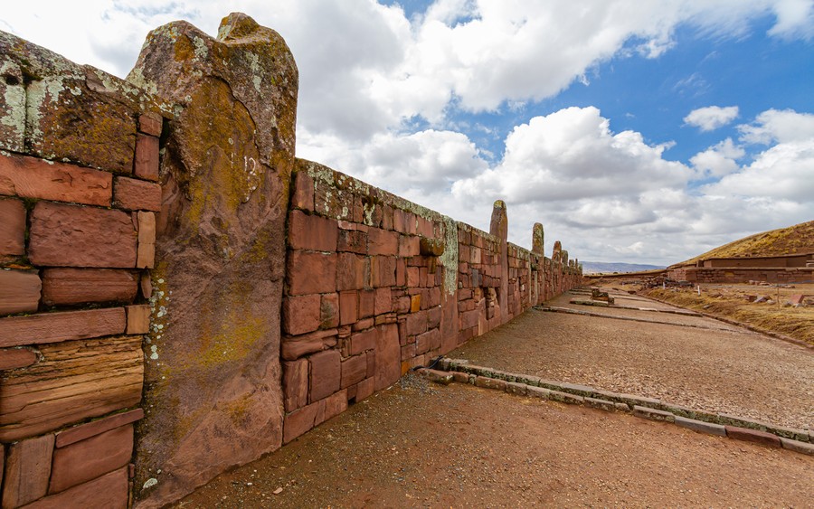 Még háromnegyed óra, és megérkeztünk a csodavárosba, Tiwanakuba, ami az építése időszakában kikötő volt, az akkor hetven méterrel magasabb vízszintű Titikaka-tó partján. A neve ember parancsára leülő állatot jelent. Viracocha itt, a kikötő előtt található Nap-sziget mellett kelt ki a tó habjaiból. Az építmények a hivatalos álláspont szerint kétezer-háromszáz évesek, de mivel a Tiwanaku kultúra nagyjából tízezer éves, jóval régebbi építés valószínűsíthető. Jelenleg még csupán a terület 10%-át tárták föl, tehát a föld alatt, még komoly meglepetések várják az emberiséget, de pénz hiányában a feltárások agyon döcögősen haladnak.