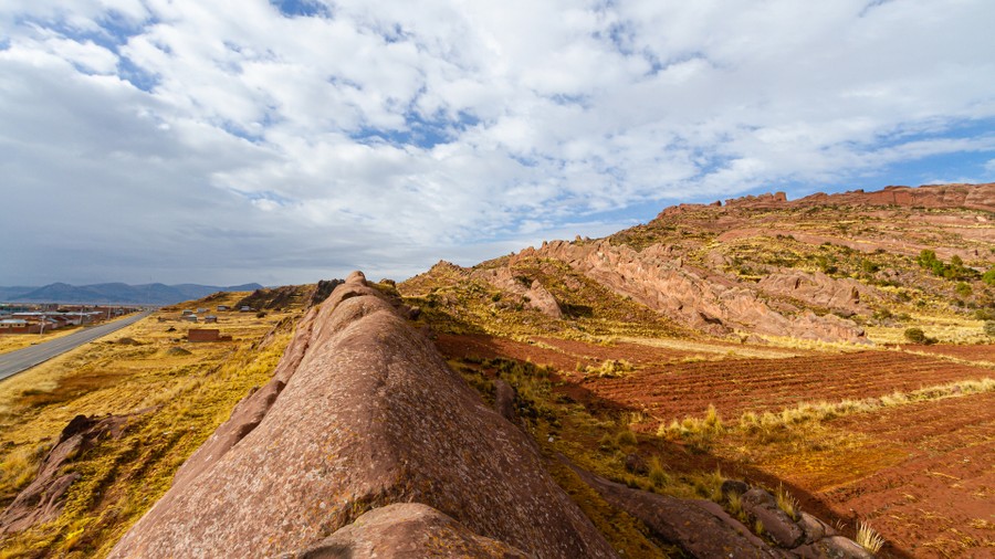 Rövid pihenőre megálltunk egy kis településen, a puma városában Pomatában, ahol megnéztük a díszesen faragott, vörös homokkőből épült templomot. A város a nevét onnan kapta, hogy környékén régebben pumák éltek. A határ mellett mutattak egy kisebb tűzhányót, amelynek két krátertavában a bolíviaiak a mai napig emberáldozatot tartanak, amelyhez az áldozati alanyokat elrabolják. Mögötte havas hegygerincek húzódtak. A táj elég kopár volt, sárguló icsa fűcsomók borították a talajt. Ezt hívják puna vegetációnak, amikor a hő és főleg a víz visszatartása érdekében a növények kis csomókba tömörülnek. Közöttük kisebb-nagyobb sziklák hevertek, elvétve egy-egy fa tarkította a tájat. Helyenként szegényes, apró, vályogból készült házakat lehetett látni.
