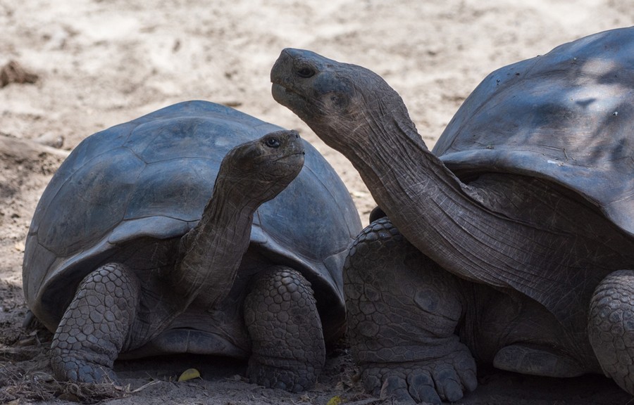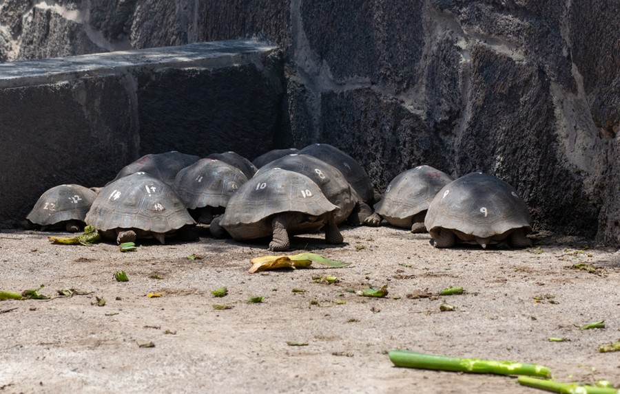 A karámokban tartott különféle helyről származó állatok páncéljai különbözőek, mivel a táplálék függvényében másképp fejlődnek. Például amelyik faj bokrokról eszi a virágokat, annak elől magasra felhajló páncélja van, amelyik földről legelészik, annak egyenesen záródik, és emiatt nem tudja felemelni a nyakát függőleges helyzetbe. Az eltérő növényvilág miatt így minden szigetnek más formájú a teknősállománya, sőt Isabelán vulkánonként is változnak. Ebből is jól látható, hogy egy faj, hogyan válik szét több új fajjá idővel, ha a körülmények megváltoznak. Itt is ez történik a szemünk előtt. A páncél formájának változása egy idő után lehetetlenné teszi a párosodást a különféle változatok között, majd genetikailag elkülönülnek, és végül különálló fajokká válnak. Itt ez a folyamat földtörténeti léptékben rendkívül gyorsan, csupán százezer éves nagyságrendben megtörtént, hiszen maga a sziget mindössze négyszázezer éve emelkedett ki a tenger szintje fölé.