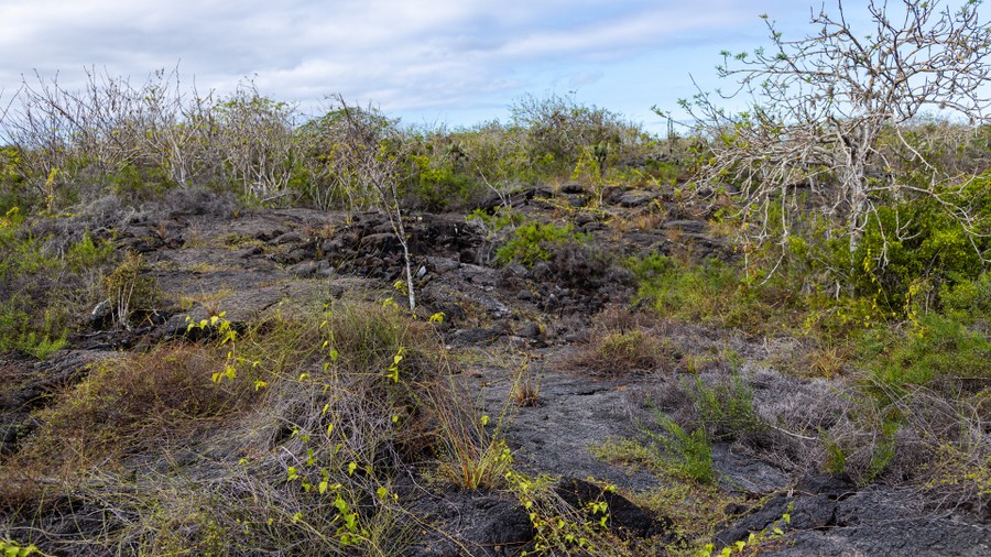 Ma reggel a csapat ketté vált. Az egyik fele kora reggel nekiindult a tengernek, és háromórányi megpróbáltatást vállalva elindultak az Isabela-sziget felé vezető hajóútra. Én a párommal a Baltra-szigeti reptér felé vettem az utam. A hangosan dübörgő légcsavaros motorok pillanatok alatt a levegőbe emelték. A gyorsan süllyedő tájban kezdett kirajzolódni a meredek partvonal és a kopár, vöröses-barna sziklás táj. Néhány erősebb huppanás, egy kis bizonytalan zötykölődés, és már Santa Cruz belseje fölött jártunk. Itt már zöldebb lett a táj, de a növényzet azért csenevésznek tűnt. Sok ideig nem bámészkodhattunk, mert hamar annak a tejfehér felhőnek a belsejében találtuk magunkat, ami a sziget csúcsát uralja. Ebből kibukkanva hamar a Csendes-óceán mérgeskék vize fölött találtuk magunkat, majd perceken belül leszálltunk a még kopárabb Izabella-sziget déli részén található apró reptérre.