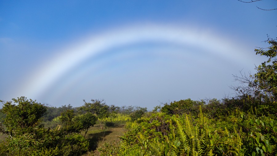 Váratlanul véget ért az erdő, kitárult a látóhatár, és hirtelen szó szerint a lábunk alatt, az 1.200 méteres magasságban nyújtózott a Sierra Negra 10 kilométer átmérőjű kalderája, amelyet csak egy észak-Amerikai, Yellowstone-beli társa előz meg a méret szerinti rangsorban. A folytonosan változó felhőréteg mögül szégyenlősen mutogatta magát. A jelenleg is aktív vulkánnak utoljára másfél éve volt az utolsó kitörése. Az óriási kráter alja fekete volt a kitörés maradványaitól. A meredek, majdnem függőleges oldalfalak zöldelltek a frissen megtelepedő növényzettől. Az egyébként is fiatal szigetnek ez a most is kialakulóban levő pontja jól reprezentálja a Földünk kialakulásának folyamatát. Hosszú perceken keresztül, ámuldozva néztük a szunnyadó vulkán pozitív energiákat, és nyugalmat árasztó, végtelenségbe nyúló hatalmas kráterét, amelyben, óriási vattapamacsként kavargott a pillanatonként eltűnő és megjelenő felhőzet. Búcsúzóul egy fehér szivárványt varázsolt Pachamama a lefelé vezető utunk fölé.