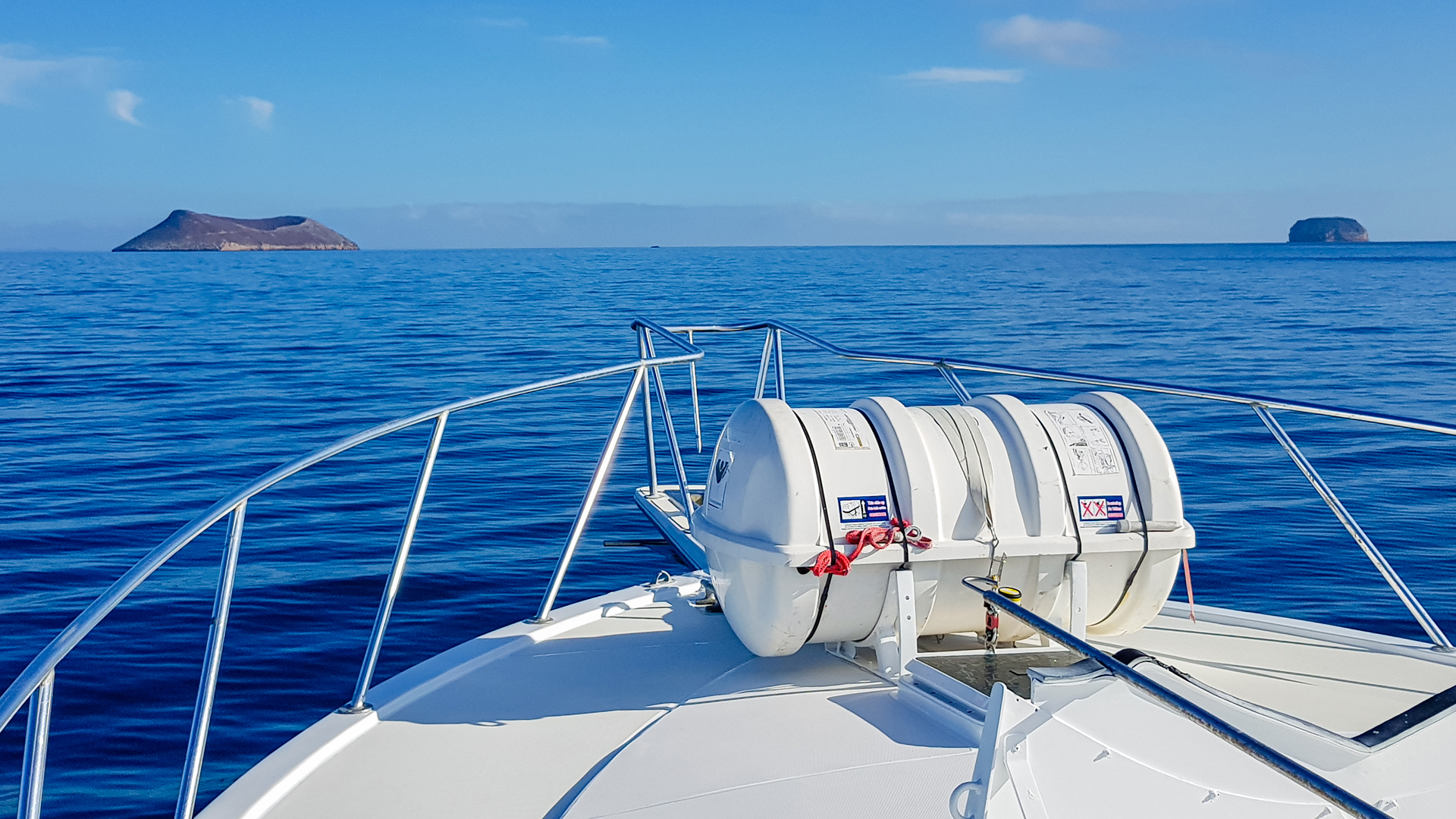 Egy kellemes reggelit követően, nagyjából két perc alatt kibuszoztunk a kikötőbe. A mólón tengeri leguánok, és fókák sütkéreztek. Vigyázni kellett rájuk, hiszen a lusta hüllőkre könnyű volt rálépni, a még lustább fóka azonban recsegő hangon ordítva kapott az ember után, ha 30 centinél közelebb haladt el mellette. Kicsi hajóba szálltunk és a közeli zátonyok egyikéhez mentünk. A tengerből csak alig kiemelkedő, csipkés, fekete köveken madarak pihentek. Volt itt pingvin, ami a déli sarkvidékről érkezett ide a hideg Humbold-áramlattal, és volt kék lábú szula, amely valószínűtlenül világoskék, úszóhártyás lábaival, és inkább szőrös, mint tollas testével látványos különlegessége ennek a világnak. Hihetetlen kék színét az elfogyasztott halak festékanyagaitól kapja.
