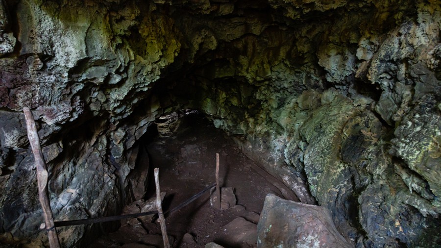 Még egy fantasztikus látnivaló volt itt. Egy hosszan elnyúló lávabarlangon lehetett végigsétálni. A nagyjából 300 méter hosszú bazaltfolyosó enyhe kanyarokkal haladt a föld alatt, de két helyen is a földfelszín fölé emelkedett. A 4-5 méter széles, talán 8 méter magas üreg falai simák voltak, és egy szakaszon két szintre osztódott. Érdekes volt belegondolni, hogy itt nemrég még ezerfokos, mézszerű massza folydogált itt a tenger felé, amely nem itt szilárdult meg, hanem kicsúszott innen, mint egy óriáskígyó.