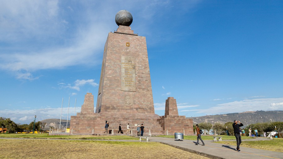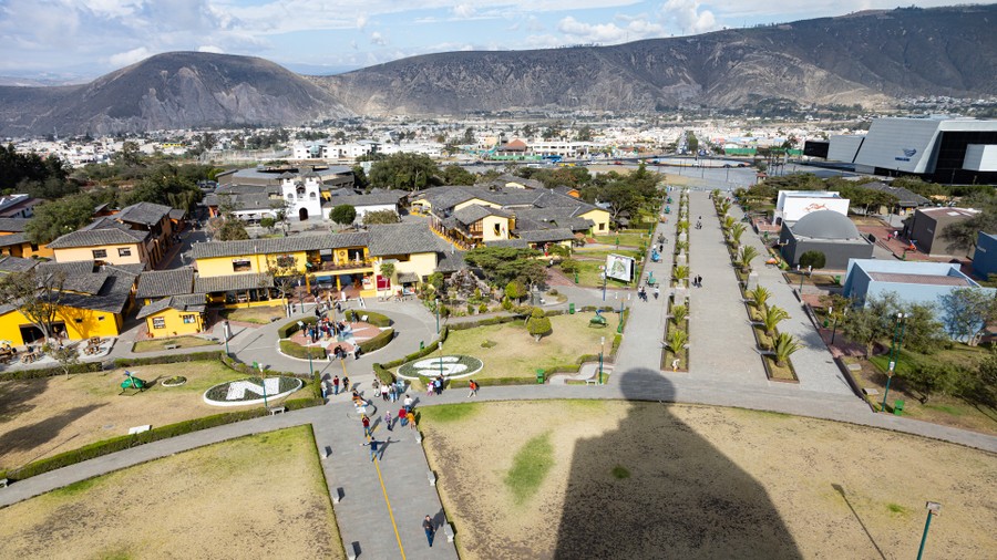 A reptérről egyenesen egy emlékműhöz, a Mitad Del Mundo-hoz, a Világ közepéhez utaztunk, amely mindössze 35 kilométerre van Qitotól. Az emlékművet egy különleges helyen emelték. Sokáig, sok tudós próbálta kijelölni a pontos helyet, még végül a legpontosabb mérések szerint itt halad át az Egyenlítő, ráadásul itt van a legmagasabban a tenger szintjéhez viszonyítva. A kővel burkolt vasbeton építmény négyzet alapú, meredek oldalú csonka gúla, amelyen a földet ábrázoló gömböt helyeztek el. A belsejében lifttel lehetett feljutni a tetején kialakított kilátó teraszra. Repültem már át fölötte, voltam a közelében, de életemben most először állhattam egyszerre mindkét féltekén. Az építmény főbejárata előtt, pont az egyenlítőn egy szöget vertek egy asztalkába. Állítólag csak itt lehetséges, hogy egy tojást ezen megállítsanak. Valószínűleg nem sikerült mindenkinek, mert körben tojáshéjdarabok hevertek. Estére besétáltunk a főtérre, az annak közelében található szállónkból. A városon nagyon látszódott a Spanyol hatás. Minden az ő stílusukban épült, de a belváros szerkezete nagyjából megőrizte az eredeti utcahálózatot. Megmaradt ugyan az az utca, ami annak idején összekötötte a Nap és Hold templomot, és ahol a felvonulásokat tartották. Mára azonban a Naptemplom helyén bazilika áll, a Holdtemplom helyén pedig hatalmas Mária szobor. Az utcát mára a hét kereszt útjának nevezik, és katolikus ünnepeken tartanak rajta felvonulást. Meglepő módon hiába voltunk az Egyenlítőn, lehűlt annyira a levegő estére, hogy jól essen felvenni egy pulóvert. A vacsorát egy főtér közeli étteremben fogyasztottuk el.