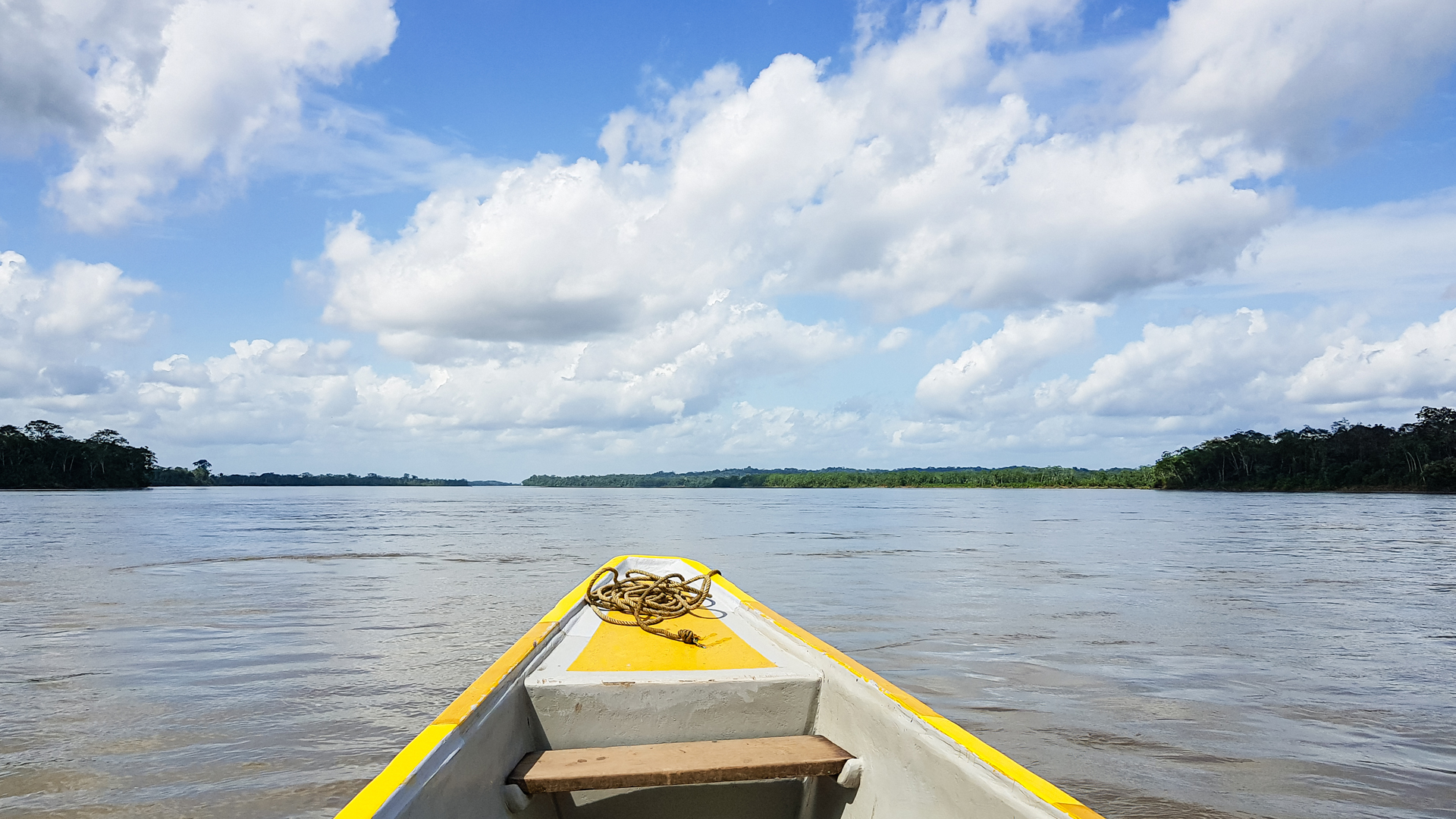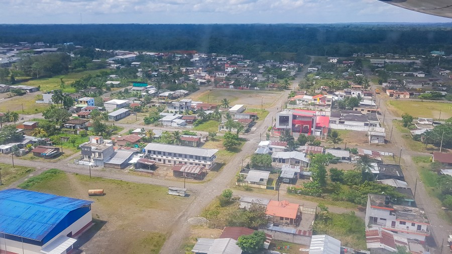 Reggel ismét a reptérre mentünk, és megkezdtük Amazóniai kalandunkat. Negyven perces utunk során átrepültünk az Andok hegylánca fölött, majd a Napo és Loca folyók torkolatánál épült Coca városába, az Orellana reptérre szálltunk le. Ez a város a Világ vége. Egy újonnan épült kábelhíd ível át a Duna méretű Napo fölött, a rajta átvezető út pedig még 70 kilométernyit vezet az erdőben, aztán nincs tovább. Cocából tulajdonképpen már csak csónakkal lehet tovább jutni. Amazóniában ez a normál közlekedési mód, így hatoltak be a területre annak idején a hódítók, és így hatolnak be a mai napig az olajtársaságok, de még a lakóhelyek is a folyó partján találhatók. Maga a zöld rengeteg áthatolhatatlan. A város a nevét a coca cserjéről kapta, ami a hegyek között nő. Levelét hagyományosan a népi gyógyászatban használták, az eredeti Coca Colának, amit orvosi céllal készítettek, szintén fontos összetevője volt, de ebből készül a kokain is. Maga a város az 1820-as években jött létre, a kaucsukláz idején. Az indiánok már régóta használták a kaucsukfa megvágott törzséből kifolyó fehér folyadékot, amely melegítve rugalmas, de szakítószilárdság nélküli masszává dermedt. Az akkor felfedezett vulkanizálás következtében, amikoris ként adtak a nyersgumihoz amitől nyújthatóvá vált, ugrásszerűen megnőtt a kereslet iránta. Az erdőben szétszórtan élő fákból kinyert nyersanyagot ezen a településen gyűjtötték össze. Amikor kicsempészték innen a csemetéket, és elkezdték Ázsiában, elsősorban Malajziai ültetvényeken termeszteni, az itteni begyűjtés gazdaságtalanná vált, a város kiürült, elhagyatottá vált. Aztán az 1970-es években az egyik legnagyobb olajmezőt fedezték föl, amitől a város ismét felvirágzott. Az olajkitermelés ma is óriási méretekben folyik. Emiatt hatalmas területeken irtanak erdőket, és szennyeznek vizet.
