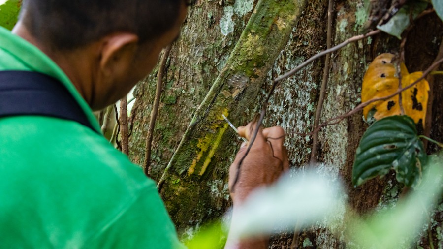 Egy dombra érve a vezetőnk egy liánhoz lépett. Ez volt a kuráre. Megtudtuk, hogy az ebből készült mérget használják vadászatra. A lián kérgéről machetével apró forgácsokat kapart le egy levélre. A levelet összesodorta, szorosra kötötte, kettéhasított faágba fogatta, majd vizet öntött rá, amit egy levéléből formált edényben fogott föl. Az így elkészült barna folyadékot gyógyításra használják. Fertőzésekre, sebekre és belső élősködők ellen nagyon hatékony a rendkívül keserű folyadék, amiből természetesen ittam két kis kortyot. Ezért a folyadékért egyébként a városi doktorok is kijárnak a bennszülöttekhez. Ettől a ponttól indul a kuráre folyadékból a méregkészítés. Egy edényben, tűz fölött addig forralják, ameddig egy a tej föléhez hasonló hártya képződik. Ezzel a ragadós, fekete masszával kenik meg a kihegyezett nyílvesszők, vagy lándzsák hegyét, majd tűz fölött rászárítják azokra. Az így elkészített fegyvereket bambuszból tegezekben tárolják. Akár 10 évig is hatásosak maradnak, ezért egyszerre akár száz darabot is készítenek. Egyetlen állat megöléséhez csak egy darab kell. Találat esetén öt percen belül elpusztul az áldozat. A tévhittel ellentétben, az emberre nem halálos, így a harcokban sem használják. Megmutatták, hogyan lehet sima törzsű fára felmászni egy feltekert liánköteggel. A két lábfejet beledugva a gyűrűbe, fel kell ugrani a fatörzsre, és miközben kapaszkodunk a kezünkkel, a testsúlyunkat rá kell engedni a liánkötegre. Ezután a kezet följebb csúsztatjuk, majd a lábunkkal is följebb ugrunk.