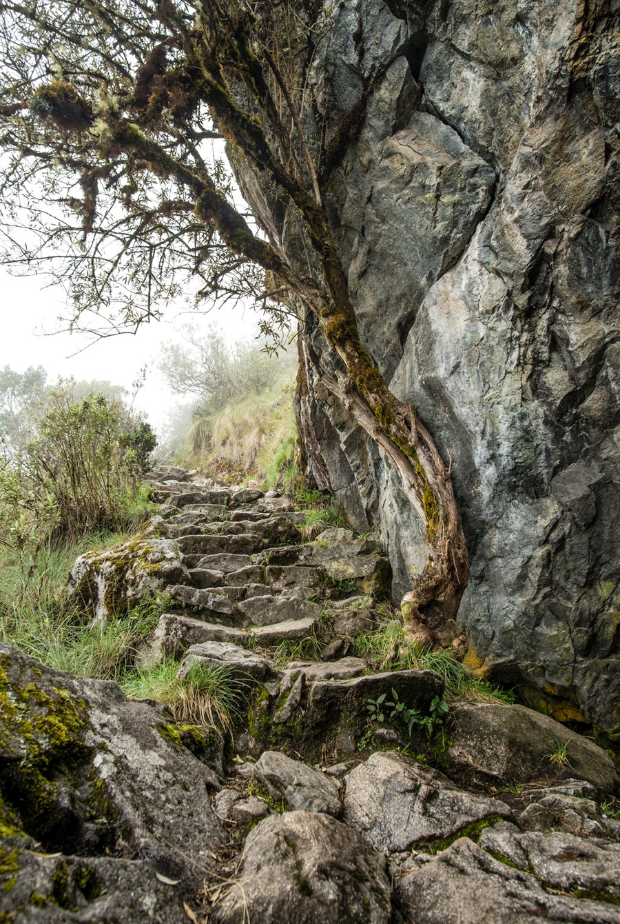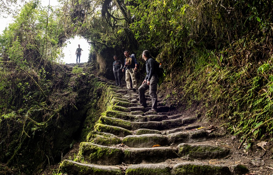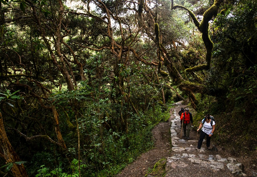 A nap végére a táj már vadabbá válik: a völgy beszűkül, a hegyek magasabbak lesznek, és az ösvény egyre inkább az Andok meredek gerincei felé vezet. A párás felhőerdőben a göcsörtös fáinak ágait vastag moharéteg borítja, a törzsekről páfrányok és broméliák nőnek.