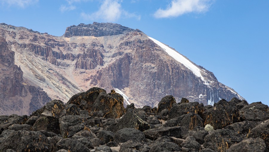 A Kilimandzsáró rétegvulkán Tanzánia északi részén, Kenya határának közelében. Méretei elképesztőek. 100 kilométer hosszú, 75 kilométer széles, és 500 kilométeres távolságból is látható. Fő csúcsa, az Uhuru, ami az ország és egyben Afrika legmagasabb pontja. Az Egyenlítőtől csupán 320 kilométerrel található délebbre. Története a földtörténeti Harmadidőszakban (252- 66 millió évvel ezelőtt) kezdődött, amit köznapi megfogalmazásban a dinoszauruszok korának is neveznek. Ekkor történt a Pangea őskontinens drámai darabokra szakadása. Először az északi Laurázsia, és a déli Gondwana vált el egymástól, később pedig ezek is tovább darabolódtak. Ennek a gigászi erőket felszabadító folyamatnak a következtében formálódtak meg a mai kontinensek. A folyamat ma is tart, és a további feldarabolódásnak több helyen látszódnak a nyomai. Az egyik ilyen az afrikai Nagy-hasadékvölgy, amelynek északkeleti folytatása a Vörös-tenger és az Izrael-Jordánia határán húzódó mélyföld, amelyben a Holt-tenger található. Ennek a tektonikus folyamatnak a következménye a hasadékvölgy peremén kialakuló vulkánok sora. Ezek legnagyobbika a Kilimandzsáró, amely mintegy száz kilométer hosszú, és harminc kilométer széles hegyóriás. Három vulkáni kúp alkotja nyugatról kelet felé a Shira, a Kibo és a Mawenzi. Ezek közül a Shira a legöregebb, nagyjából kétmillió éves. Kalderája már régen eltűnt, helyén 3800 méter körüli magasságban egy plató található mivel a később kialakult Mawenziből kiömlő láva feltöltötte.