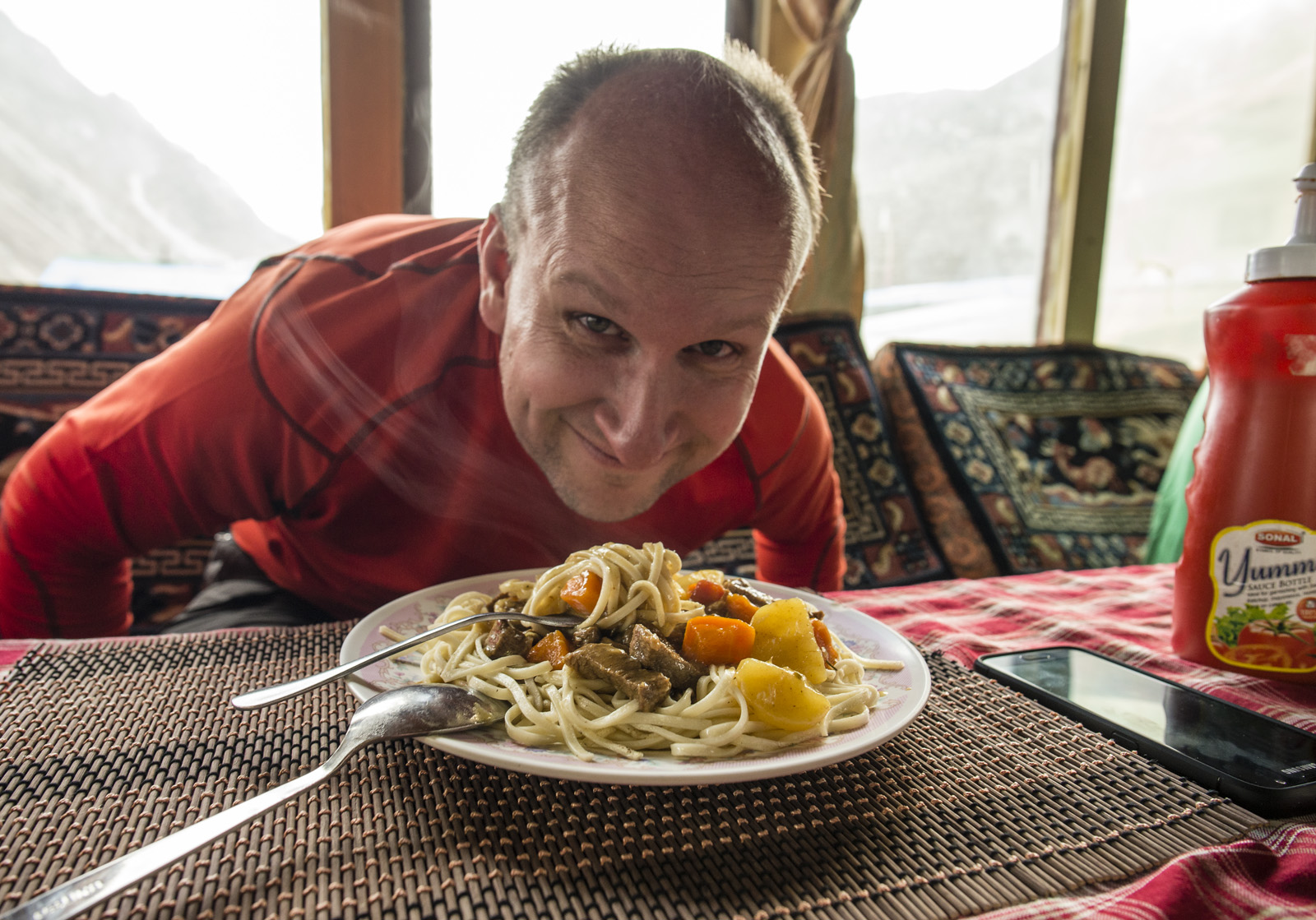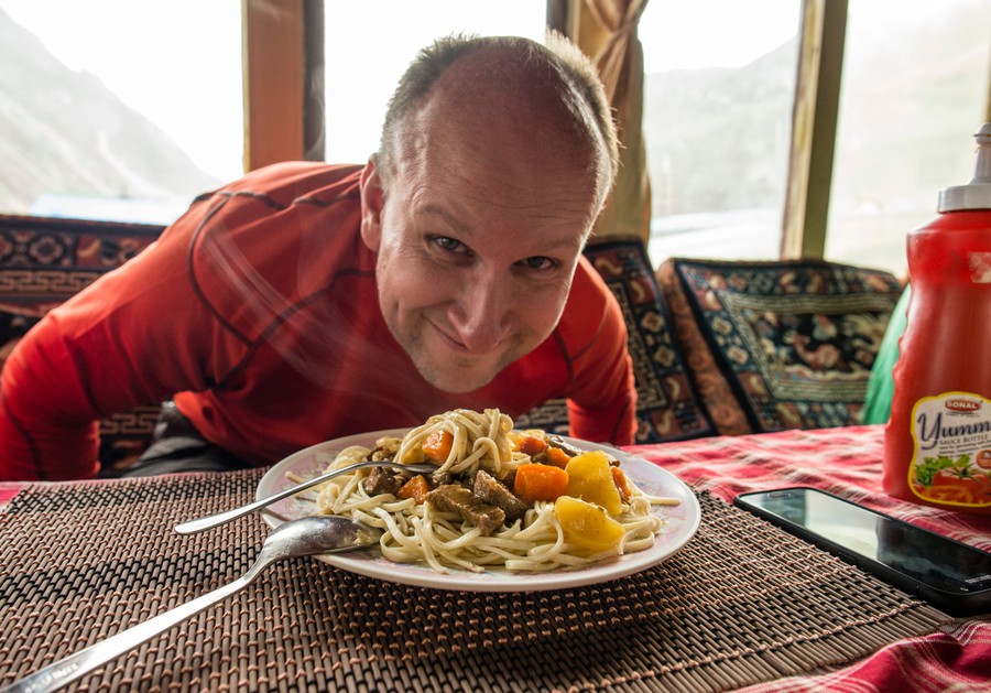Mint említettem a víz is kincs itt, nem beszélve a meleg zuhanyról. Azt gondolod az elején, hogy mekkora hiányérzeted lesz. Nem lesz. Egyre fentebb egyre kevésbé akarsz fürödni. Elég a nedves törlőkendő meg a remek technika, hogy érkezés után büdi túraruha le, zoknicsere, szárazruha és máris megvan a komfort. Rutinosak már az alvóruhát is aláveszik, így este vacsi után nem kell borzongva átöltözni.