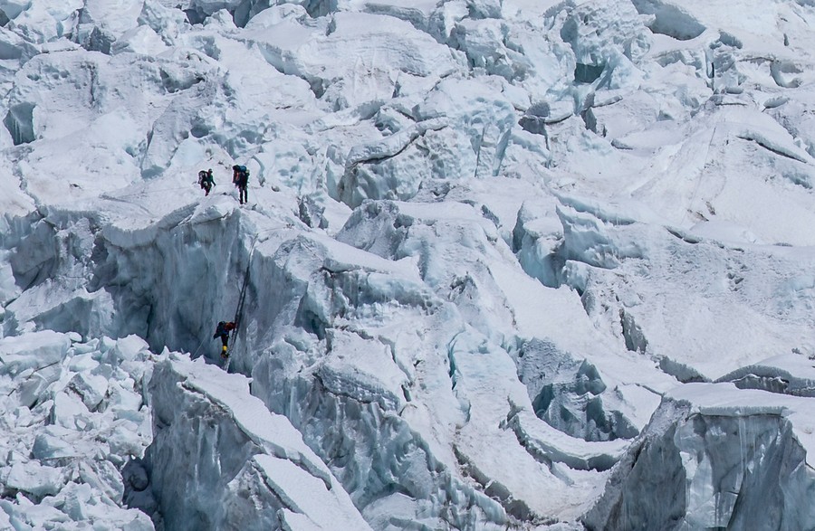 A durva, hogy egy erősebb objektívvel rázoomolva a saját szemünkkel láttuk az éppen ereszkedő mászókat ezen a közel sem barátságos jégmonstrumon. Továbbá, amikor a túrázók klasszikus BC fotóhelyén túlhaladva elsétáltunk a magyar expedíció sátrához (kb még egy óra volt a táboron belül), ami közvetlen ezek útvonal start vonala mellé volt felhúzva akkor konkrétan nem egy éppen onnan előbukkanó zombiszerűen mozgó mászót láttunk megérkezni. Hogy honnan jött, mit ért el fent azt nem tudjuk, de egy biztos, hogy holtfáradt volt mindegyik.