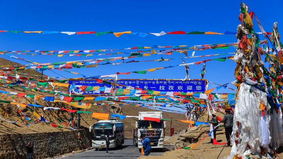 Délben egy pihenőnél álltunk meg, ami a Friend Highway 5 000 kilométerénél van Sanghajtól mérve. Itt 4 200-on azért már lehetett érezni a magasságot. Már mélyebbeket lélegeztem, ami néhány gyorsabb lépés után zihálássá vált, ezt pedig enyhe megszédülés tett még vidámabbá. Itt már az egyensúlyérzékelésem is bizonytalanná vált. Ha megálltam, folyamatosan olyan érzésem volt, mintha mozogna a föld alattam. Innen kezdtük meg emelkedésünket a Tsola hágóra, ami 4 600 méteren van.