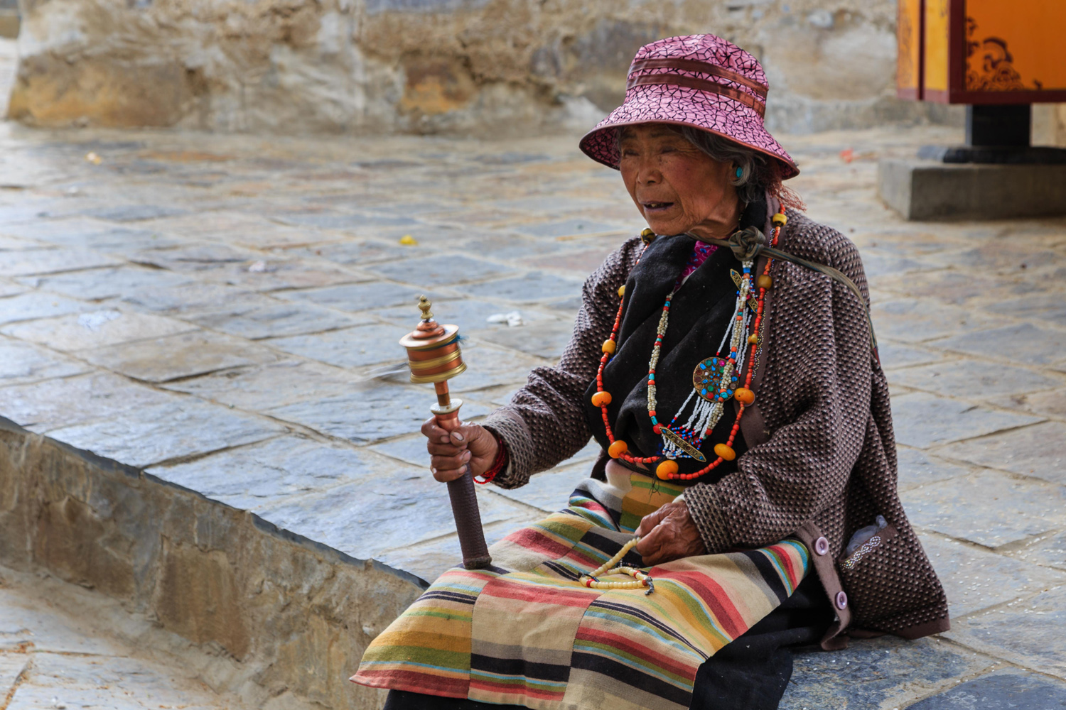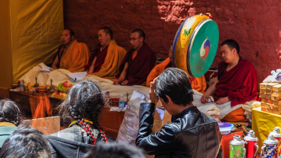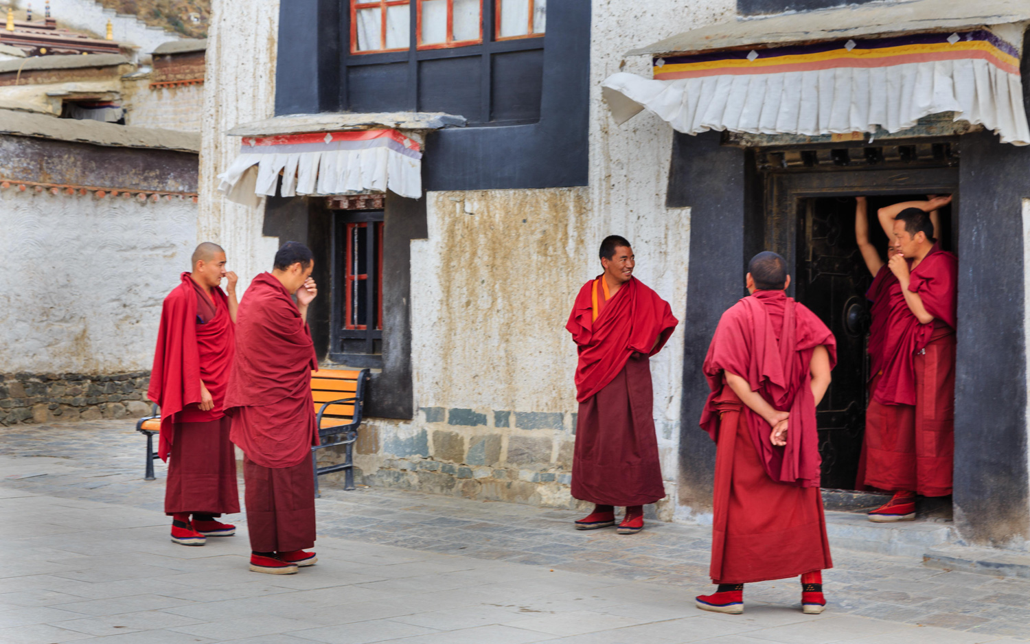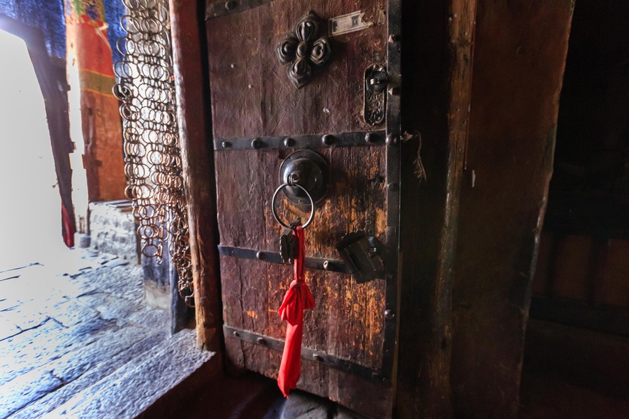 Ezeket most a kolostor udvarán ücsörögve írtam, mialatt a többiek akklimatizációs pihenést folytattak a szobájukban. Miközben gépeltem számtalan érdeklődő szerzetes és zarándok ült mellém, és nézte mit csinálok. Elképesztő volt az rácsodálkozás, ahogy tágra nyílt, mereven rám szegezett szemmel próbálták megfejteni annak értelmét, amit csinálok. Ráncos, cserzett arcukkal, rezzenéstelen szemhéjaikkal ültek mellettem, miközben megállás nélkül pörgették imamalmaikat, és mormolták mantráikat. Egyszer egy magasabb beosztású szerzetes jött felém, majd a mellettem levő ajtó tibeti lakatját kezdte babrálni. Állítólag ezeket a saját kulcsuk nélkül lehetetlen kinyitni. Mozdulataira óhatatlanul felkiáltottam, mire rám mosolygott. Fényképezőmre mutatva megkérdeztem, lefényképezhetem-e a kulcsot, mire felém nyújtotta. Megkértem, mutassa meg nekem a másik, a díszes oldalát, mire elkomorodott, és köpenye alá dugta. Nem lett róla képem.