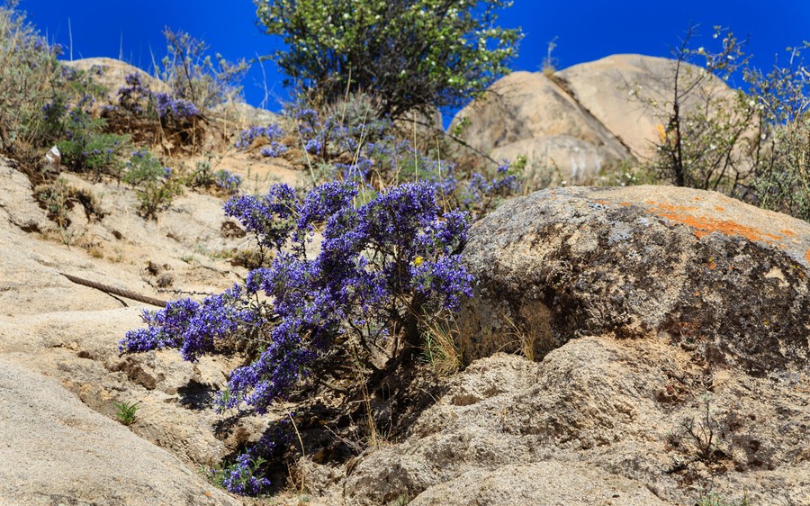 Később az eső elállt, a táj kinyílt, félsivatagos medencévé vált, amit távoli hegyek határoltak. A homokos-köves talajon egy tsiavs nevű lilavirágú, kisméretű, zanótszerű bokor tenyészett, amit semmire nem használnak, még a jakok sem legelik. Az ültetett fűz- és nyárfákon kívül más növény nem is látszódott.