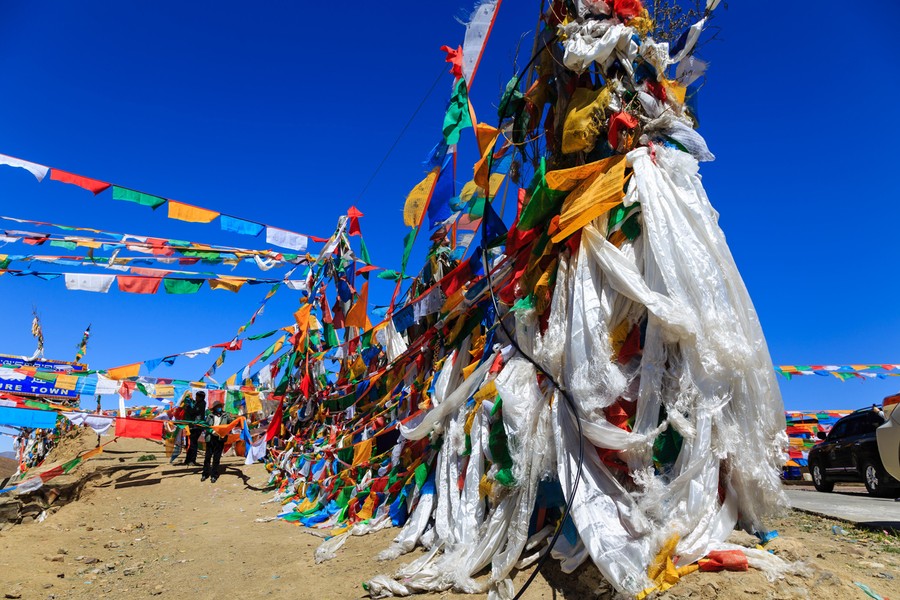 A hágó tetején imazászlók erdeje reptette a mantrákat az égiek felé. A teherautók már nem fértek át alattuk, de az önkéntesek segítettek átbújni alattuk. A csúcsra gyalog mentünk föl. A látvány mindenféle szempontból lélegzetelállító volt. Lassú lépések, mély lélegzések. Eszembe jutott a búvárkodás. Elegendő levegő se itt, se ott. És eszembe jutott a keszonbetegség, amikor is a vérben oldott gázok a csökkenő nyomás hatására elkezdenek buborékká válni. Nos, ezt a folyamatot én is kezdtem átélni, csak mivel én egy búvárhoz képest lassabban emelkedtem, a gázok folyamatosan távozni tudtak. Itt is, ott is.