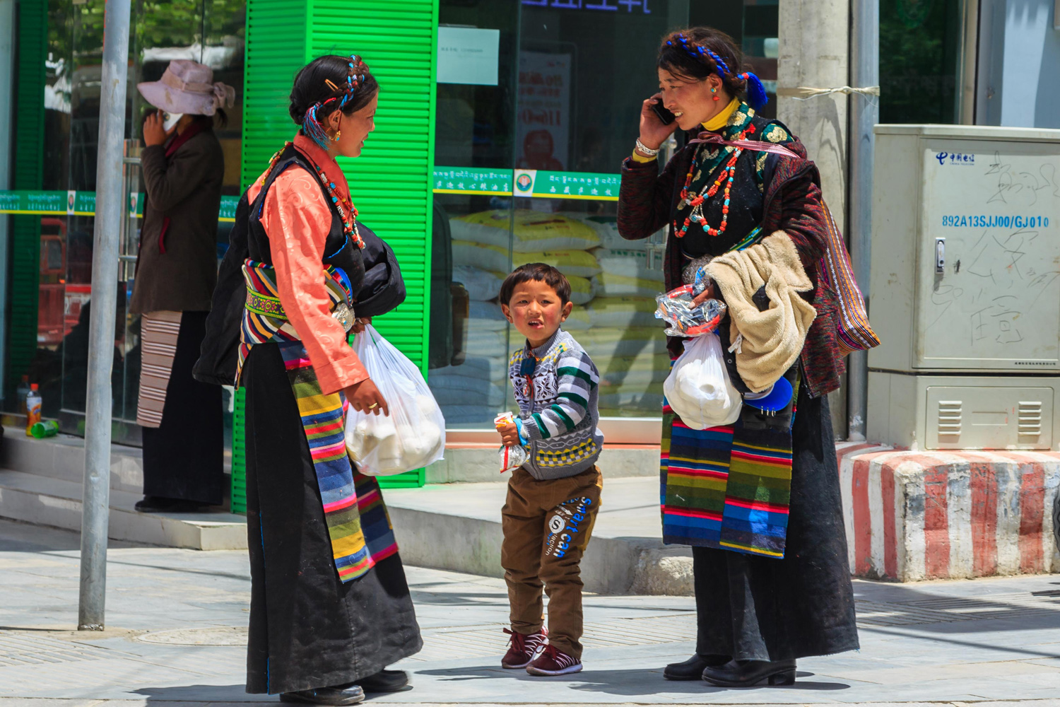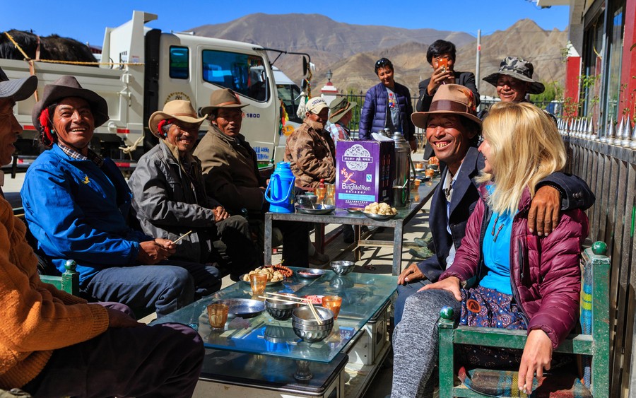 Délután olyan 22 fokos volt a hőmérséklet, de már kezdtem kicsit fázni, pulóverben sétáltam a városkában, ahol összesen 3 magyar, 2 angol, és 11 orosz külföldi tartózkodott. A település teljesen modern tibeti hangulatú kínai kisváros volt. A kukás autón őrületesen hangos kínai zene üvöltött, csak kínai boltot és éttermet lehetett találni. Az emberek olyan csodálattal néztek, mintha mi lennénk itt az első európaiak. Odajöttek, néha megtapogattak, nézték mit csinálunk. Teljesen meglepődtek, amikor tibetiül rájuk köszöntünk. A gyerekek egymás vagy, anyjuk háta mögé bújva próbáltak angolul ránk köszönni, aztán elszaladtak.