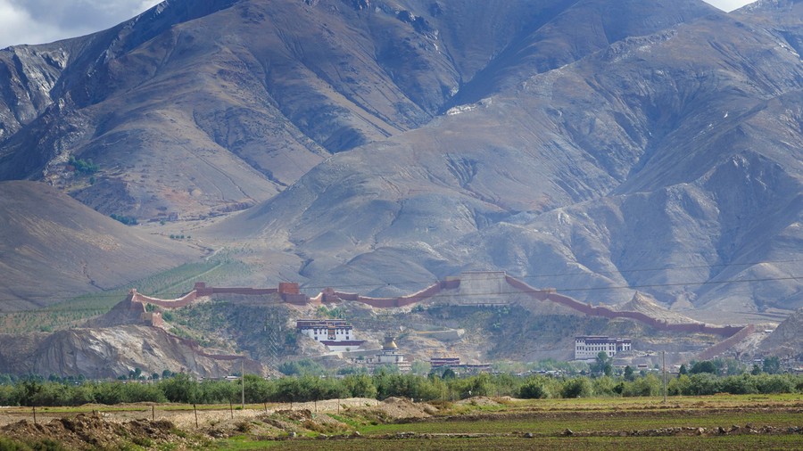 Shigatse-ből, 4.000 méterről indultunk tovább a főváros felé. Egészen Gyantse-ig hatalmas művelt területek húzódtak. Tibet legtermékenyebb völgyében főleg rozst és repcét termesztenek. Betakarítás idején ez egy veszélyes útszakasz, mert sörtől bódult emberek tántorognak az úton. A már említett többférjűség itt még élő hagyomány, ezért a házak mérete is hatalmas. Az itteni nőket egyébként a legszebb tibeti nőknek tartják. A földeken errefelé sok dzo (jak-tehén keverék) dolgozik.