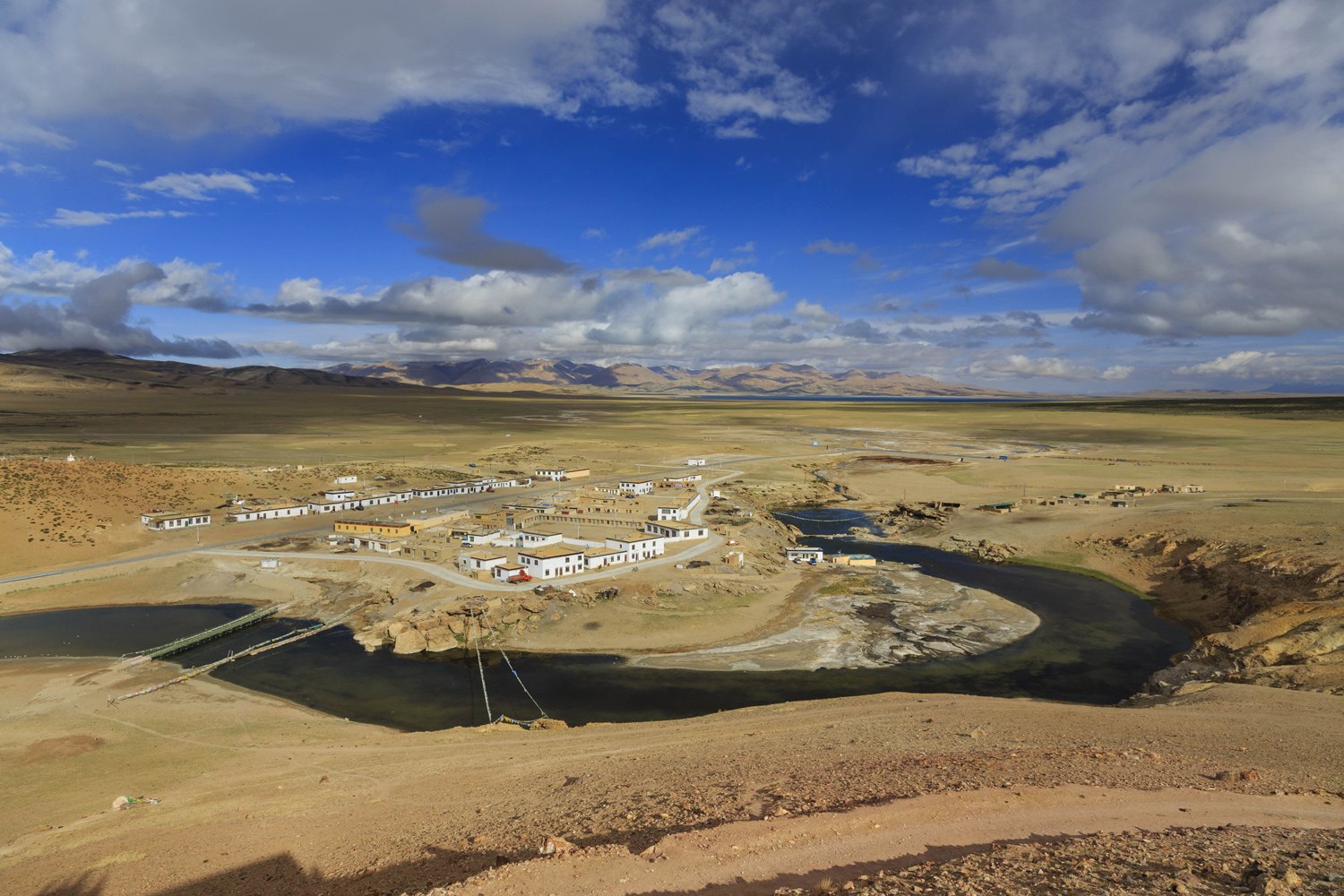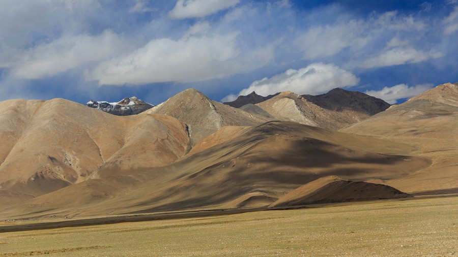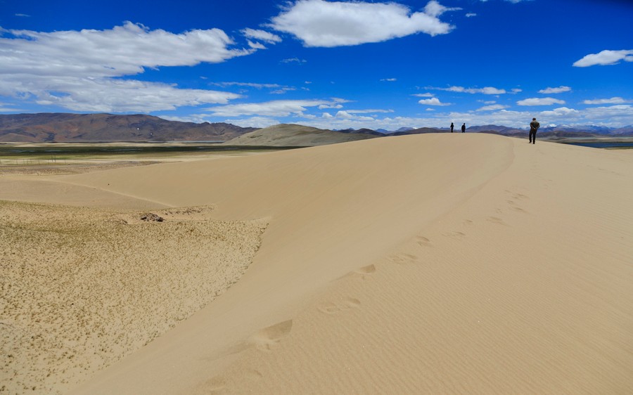 Ezután elindultunk Lhásza irányába. Egy darabig napsütésben, majd hódarában. A pillanatról, pillanatra változó időjárás percenkét új arcát mutatta az egyébként is változékony tájnak. Haladtunk a Tibeti-fennsík végtelenében, miközben utunkat „dombok” szegélyezték. Később az idő naposra fordult, már nyoma sem volt a reggeli hidegnek, ezer ágra sütött a Nap.
