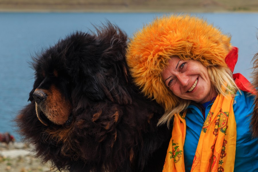 Ebéd után még elhaladtunk a Jambrok-tó mellett, amelynek türkizkék vizén sűrűn rajzoltak karikákat az alacsonyan ülő felhőkből kipottyanó esőcseppek. Ez a tó is egyike annak a négynek, amelyikhez az új lámának el kell zarándokolnia. A partján turistacsalogatásként igazi tibeti masztifokat lehetett simogatni, amiknek akkora fejük volt, mint egy kisebb medvének. Ezeket eredetileg pásztorkodásra és házőrzésre használták.