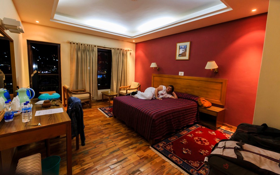 Sötétedni kezdett, úgyhogy elfoglaltuk szállásunkat a stadion melletti szállodában. Egy igazi ámulat volt, mert a hagyományos építészeti elemek felhasználásával készített épület igen kellemes, sőt lélekápoló volt. A tágas, barátságos szoba is arra volt hivatott, hogy a kényelmünket szolgálja. Igazi luxus, négycsillagos szinten, rendkívül csinos, szolgálatkész személyzettel.