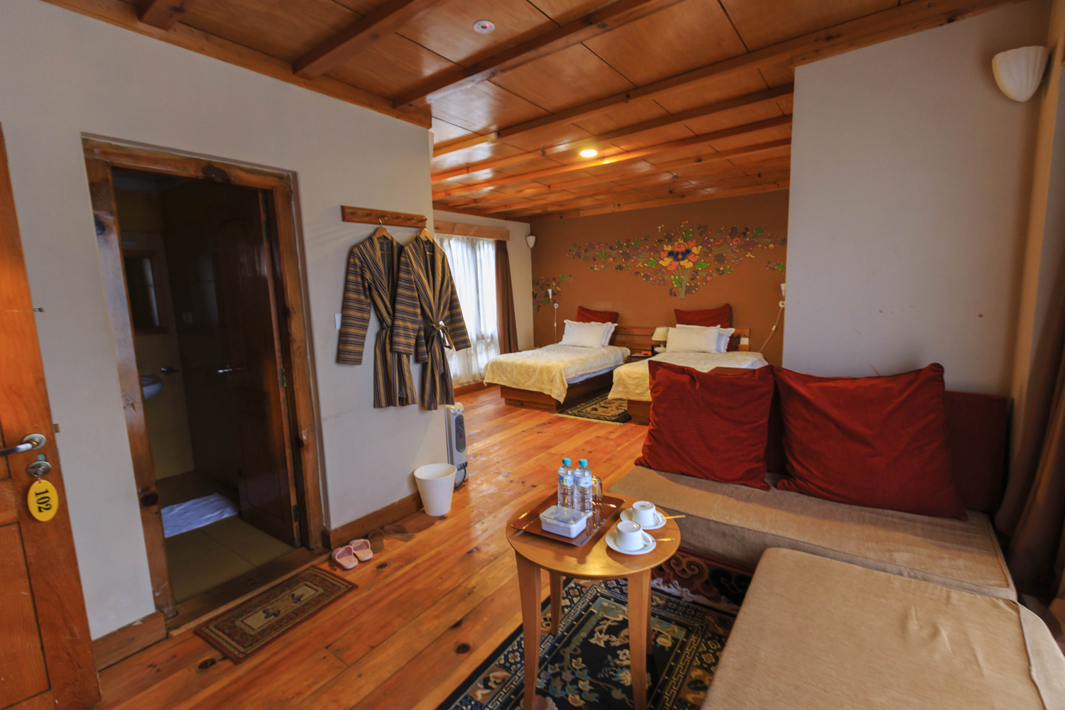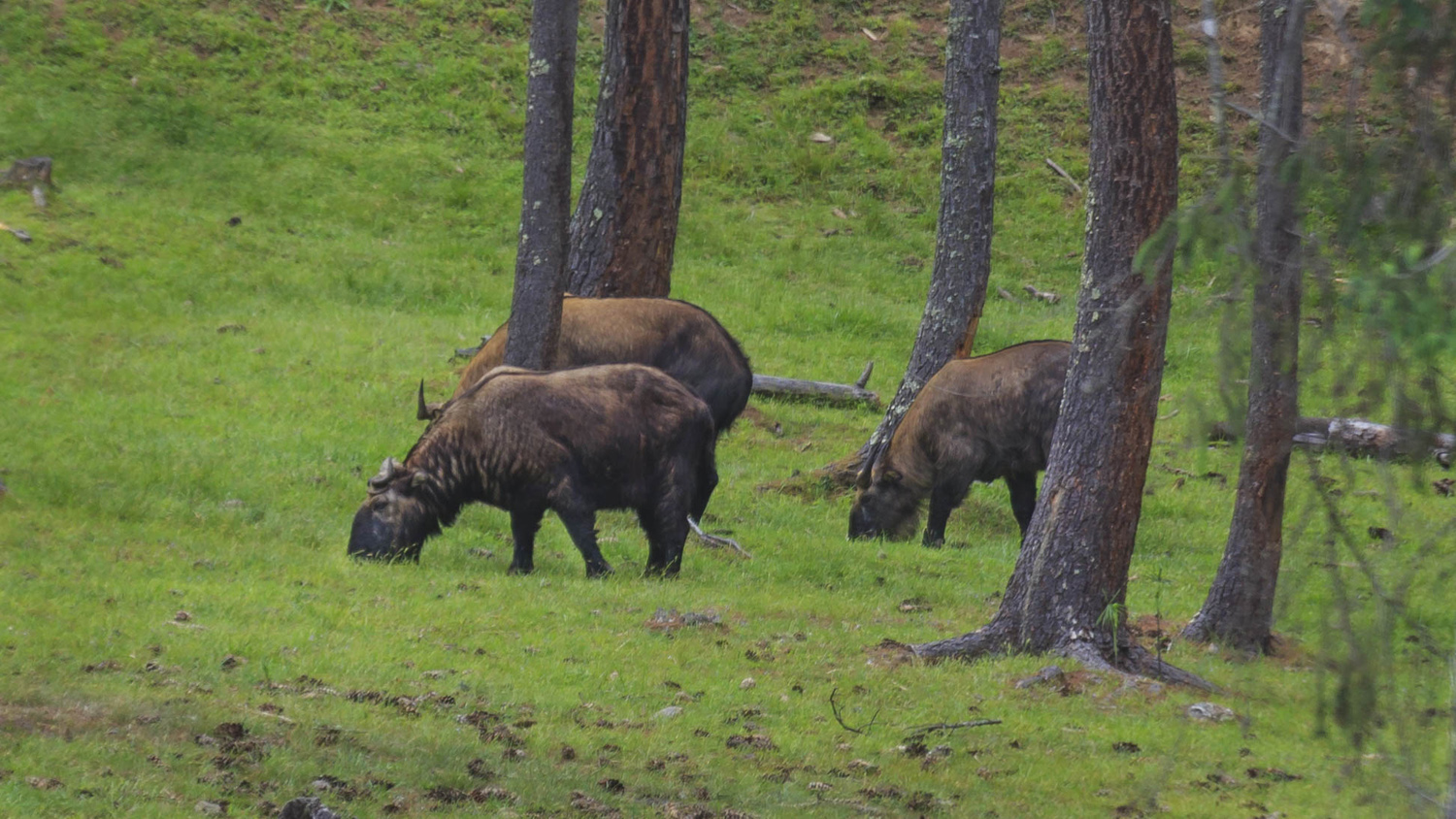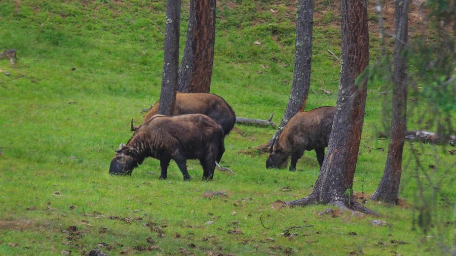 Timphuban egy gyors ebédet követően ellátogattunk a vadasparkba, ahol a bevezetőben elmesélt történet szerint létrejött takint, az ország nemzeti állatát néztük meg. Az eredetileg 3 500 méter fölött élő állatok a király védelme alatt állnak, és aki bántja azokat, annak igen hosszú börtönbüntetésre kell számítania. Ugyan már láttam régebben, de azért most is meghökkentem előnytelen külsejükön. Szomorú történetet meséltek. Az előző télen a hideg miatt elfogyott a természetes táplálékuk, és szénát hozattak nekik. Sajnos valamilyen kemikália volt rajta, és a nagyrészük elpusztult. A hetvenből csak tizenhárom maradt életben.