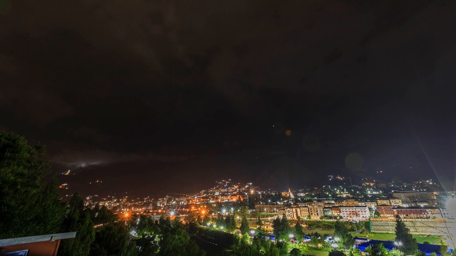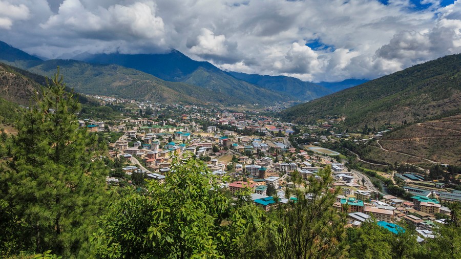 Thimphu egy nem túl tágas völgyben fekszik, így hosszan elnyúlik, és kétoldalt felkúszik a hegyoldalakra. Legfeljebb négyemeletes, szellősen épített házai a pagodaszerű tetőikkel, és a védelmező szerepet betöltő rajzaikkal igazán bájossá teszik.
