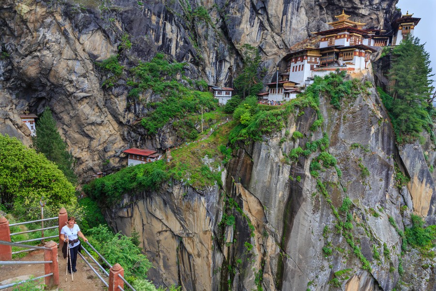 Kellemes reggeli, fél óra buszozás. Így indul egy nap, ha az ember Pharoból a Taksang kolostorhoz igyekszik. Egészen a parkolóig nincs is gond, de ott, amikor megpillantja szemünk az 500 méter magas, függőleges sziklafal lehetetlenül keskeny kiszögellésére épített bájos épületcsoportot, eláll a lélegzet. Eláll a látványtól, és eláll azért, mert fel kell mászni oda, a több mint 3.000 méteren található Tigrisfészekbe.