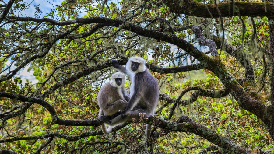 A mesebeli helyről lefelé vezető út sem volt könnyű, mert poros volt, és kissé csúszott. A rododendron erdőben szürke langur csapattal találkoztunk, amik a fák ágain pihentek. Ritka majomfaj, ezért nagy szerencsét hoz annak, aki látja.