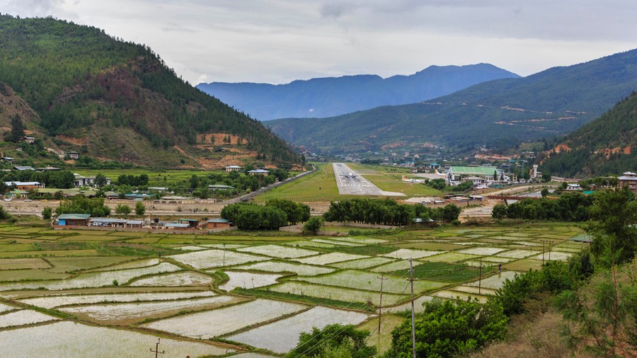 Az út nagyjából egy órás volt, miközben ismét elrepültünk a Sagarmatha méltóságteljes csúcsa mellett. A felhőkből aláereszkedve, a hegyeket szinte súroló szárnyakkal, szlalomozva közelítettük meg a Pharo-i repülőteret. Már ereszkedés közben látható volt, hogy Ázsia Svájcába érkeztünk.