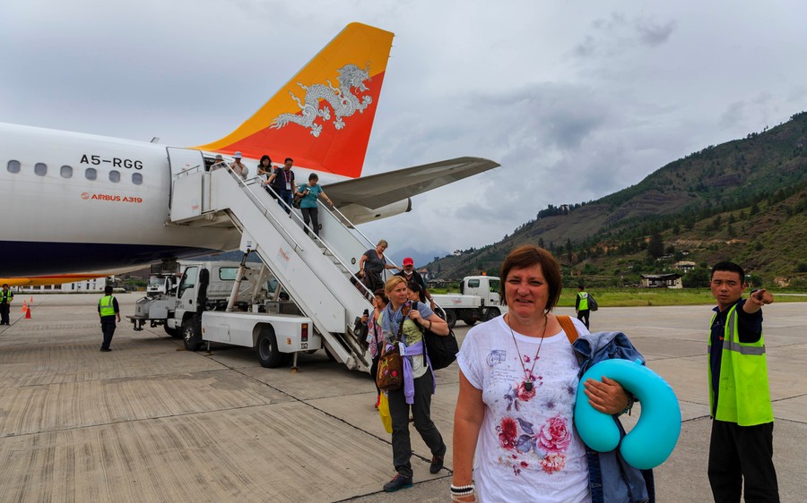Tibet körbeutazása után visszatértünk Nepálba. A csomagok ismételt átrendezése után Kathmandu fojtogatóan poros levegőjéből a Föld legtisztább, legegészségesebb országába, Bhutánba indultunk. Ez a történet sem úgy kezdődött, ahogy terveztük. Már előre jelezték, hogy a Delhiből induló repülő órákat fog késni, így ráérünk később kimenni a reptérre. Ennek megfelelően egy rövid sétát tettünk a Thamel piszkos utcáin, Tibetről szóló könyveket keresgélve, majd a város zaklatott forgalmán átverekedve magunkat, megérkeztünk a repülőtérre. Időjárási okokra hivatkozva egy újabb óra várakozás után mégiscsak a levegőbe emelkedtünk egy sárkánnyal díszített farkú repülőgéppel, a csodák és a mosoly országába, Bhutánba.