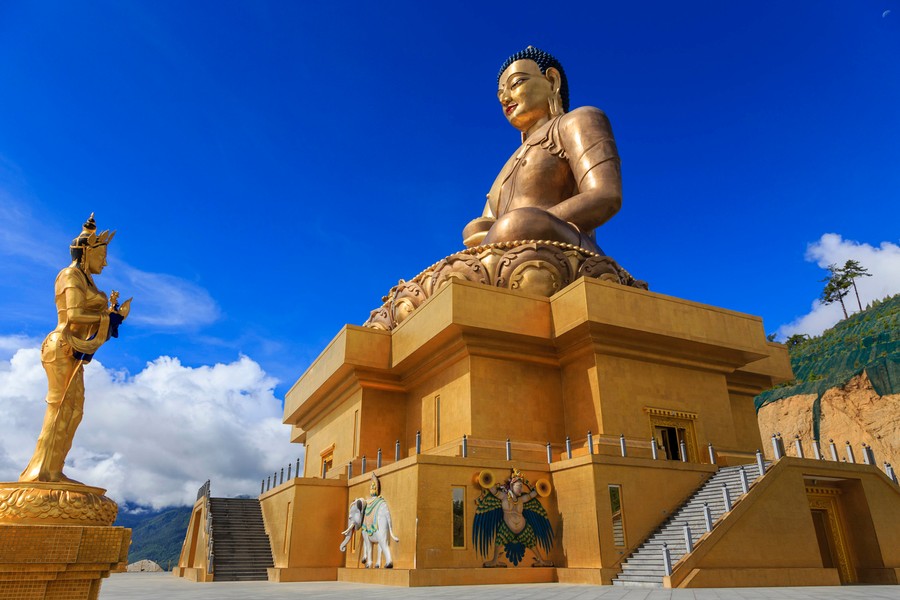 Bhután (Druk Jul) – a mennydörgő sárkány országa. A helyiek szerint itt kell keresni a Shangri-lát, a Földi Mennyországot. Területe alig több, Magyarország egyharmadánál, lakossága viszont csak 680.000 fő. Az ország területének közel 80 %-a erdő, ez a leghegyvidékesebb terület a Földön. Az eddig leaszfaltozott néhány száz kilométernyi, településeken kívüli utakon gyakorlatilag nem létezik egyenes szakasz.
