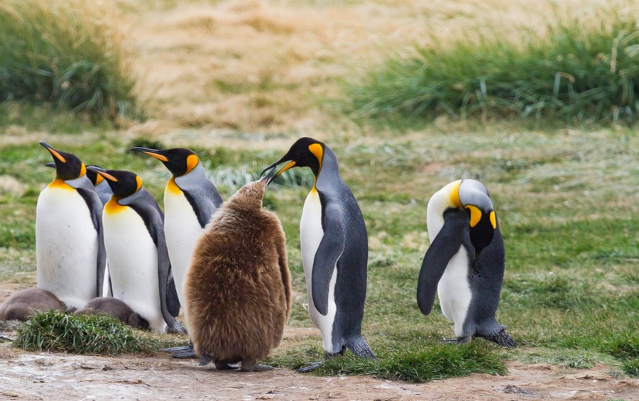 Ma már 27 felnőtt, és 50 kölyök él itt. Régészeti leletek alapján tudjuk, hogy a Selknamok idején is fordultak elő, de állandó telepet nem alkottak. A 25 kg-os madarak 50 évig élnek, kétévente tojnak egy tojást, amit a szülők együtt nevelnek. Minden fióka felnevelése után új párt választanak. 10 méter mélységig merülnek haltáplálékukért, és percenként 300 métert képesek úszni.