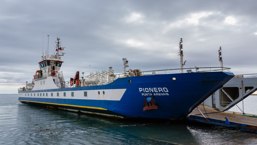 Hamar megérkeztünk a Magellán-szoros partjára, amin komppal keltünk át. A szoros keleti részének legkeskenyebb pontjánál voltunk.
