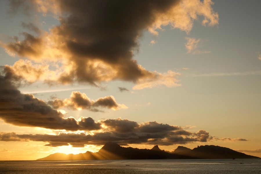 Moorea, a csendes lagúnában elhelyezkedő szív alakú szárazföld mintegy hárommillió éve emelkedett ki az óceán habjaiból. A szigetet körülvevő korallzátony 12 helyen megtörik, így a sekély lagúnákba nemcsak kompunk, de a trópusi tengeri élőlények is bejuthatnak. Szállásunk közelében - a derékig érő vízben - a lelkesen sikongató turisták lábai között gondosan beetetett, méteres rózsaszín tüskésráják (Pateobatis fai) és a hasonló méretű feketeúszójú szirtcápák (Carcharhinus melanopterus) úszkálnak, az idilli naplementét követően pedig még a Tsuchinshan-ATLAS üstökös is feltűnik az égbolton.