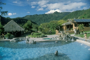 a mindig pöfékelő Tungurahua-vulkán lábánál épült Banos fürdővárosa