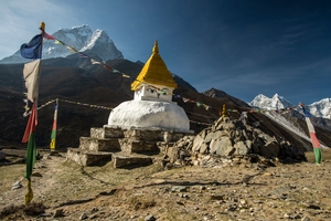 Átkelünk Nepál legnagyobb gleccserén, majd az igazi kihívást jelentő 5365 méteres Chola-hágón keresztül, a Lobuche lábánál érjük el újra el az Everesthez vezető fő túraútvonalat. Innen a Khumbu gleccser mentén gyalogolunk el a Mount Everest déli alaptáborba. Természetesen nem hagyjuk ki a 5600 méteres Kala Pattar megmászását sem. Az Everest expedíciók áldozatainak szimbolikus temetőjébe és a Tengboche-i buddhista kolostorba már a klasszikus túraösvényen visszafelé haladva látogatunk el.