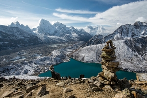A türkizkék Gokyo-tavaknál megmászhatjuk a Gokyo 5357 méteres csúcsát, ahonnan a vidék 365 hegycsúcsát, köztük a Himalája híres nyolcezreseit láthatjuk: az Everestet, a Lhotsét, a Makalut és a Cho Oyut!