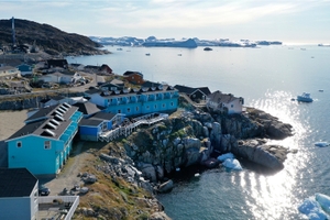A Baffin-öbölben fekvő Disko-sziget tájai teljesen eltérnek Grönland szárazföldi részétől – a sziget vulkáni tevékenység során alakult ki. Qeqertarsuaq mögött gleccserekkel borított, ezer méteres bazalthegységek emelkednek. Bazaltsziklák, fekete homokos partok és zöld növényzet jellemzőek a vidékre.