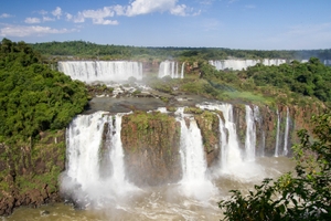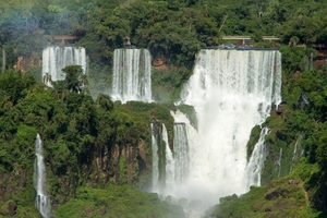 Talán nem véletlen, hogy az Iguazú név „nagy vizet” jelent a tupi-guarani nyelven. A Brazília és Argentína között megosztott Iguazu-folyó mintegy 275 szigettel és sziklakiszögelléssel elválasztott zuhataga ömlik le a Paraná-fennsík 4 kilométer hosszú pereméről, így alkotva meg a világ legnagyobb vízesésrendszerét, a lélegzetelállító szépségű Iguazú-vízesést.